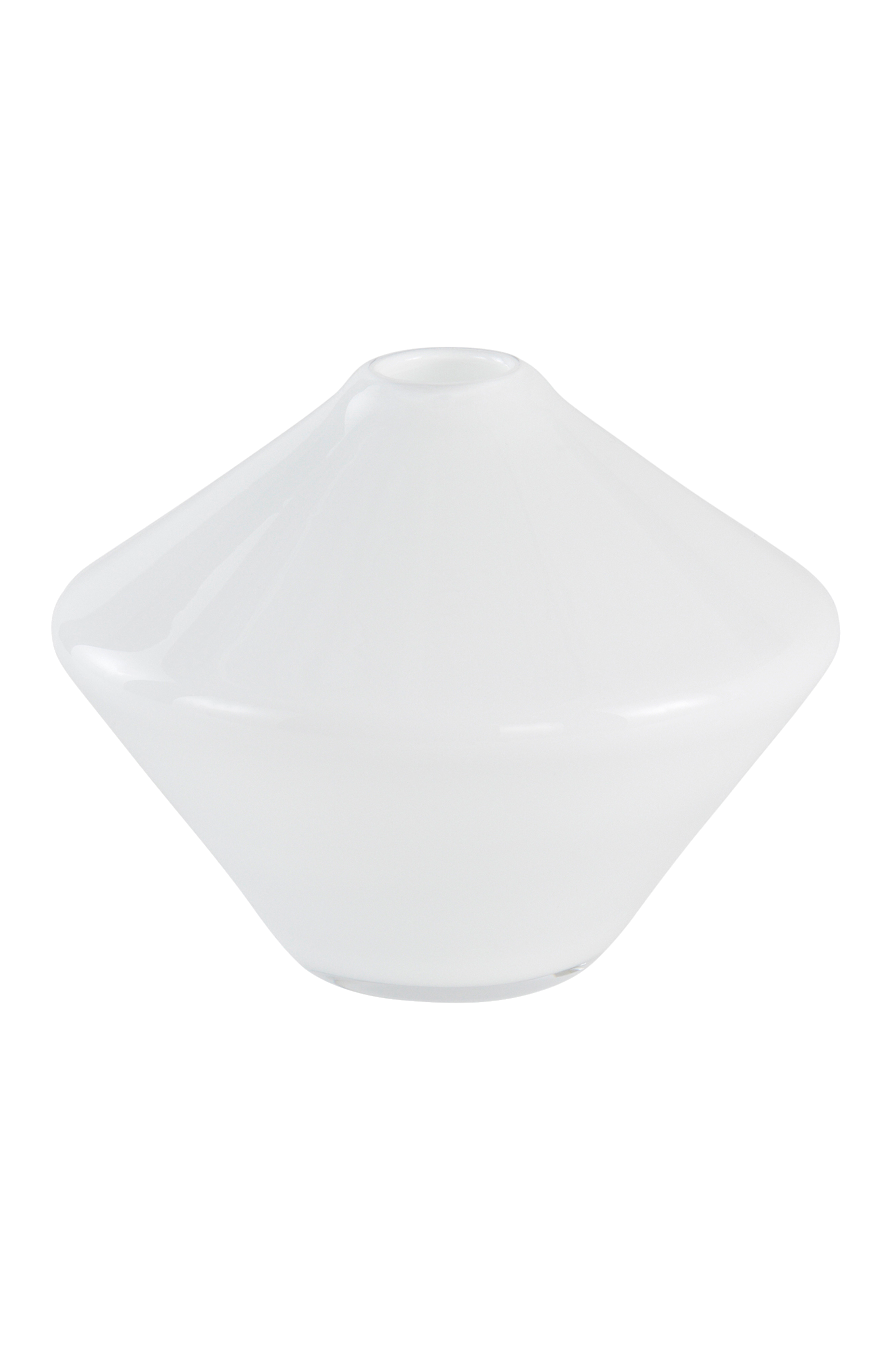 Nydelig vase, ren hvir farge, tøft design og gjør seg godt på spisebordet sammen med den høye vasen.