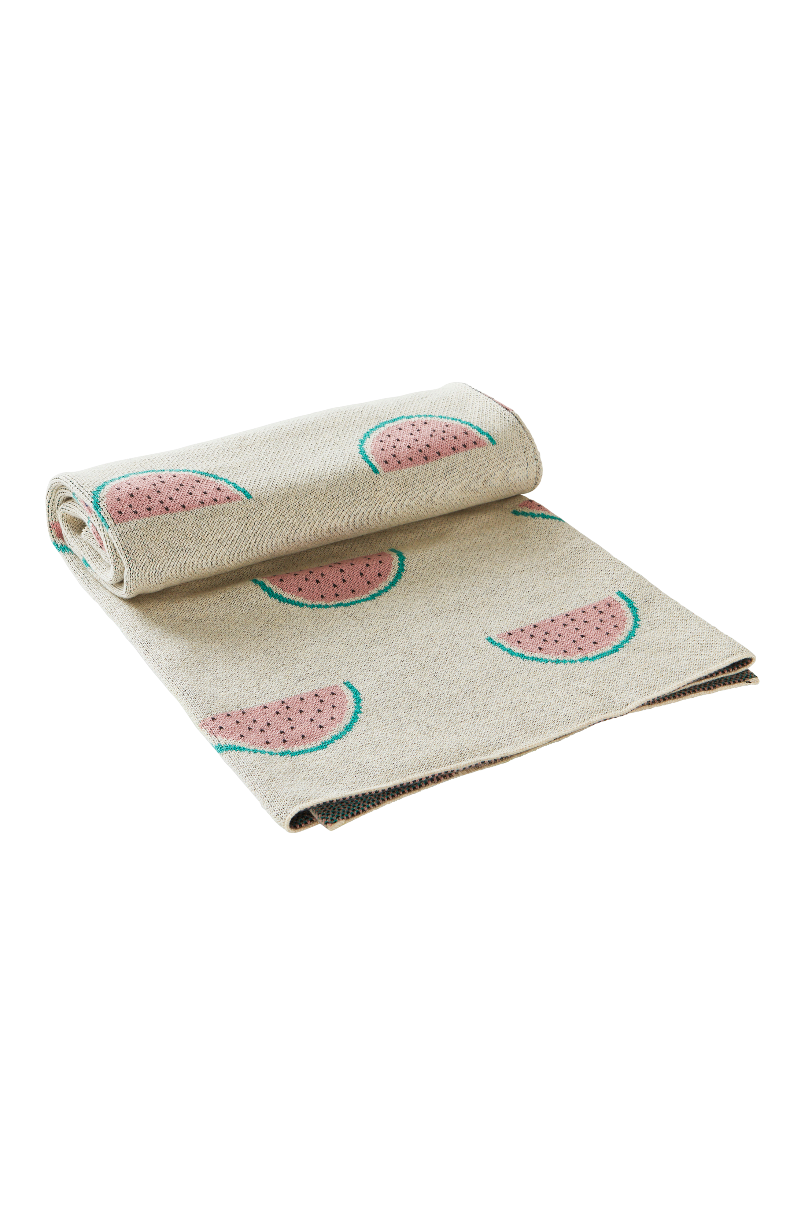 Deilig babyteppe i økologisk bomull med mange bruksområder. CERES babyteppe har et fint mønster av vannmeloner, og passer fint både som teppe og sutteklut.