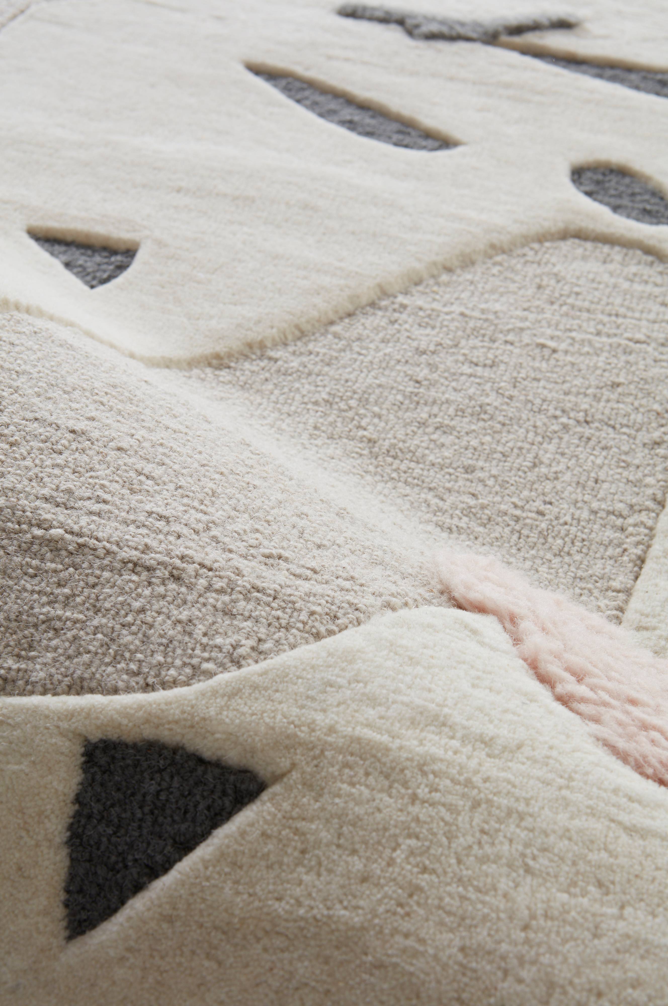 Håndtuftet ullteppe med herlig stenkmønster som utnytter både farge og variert lugghøyde for å få riktig effekt. Det dekorative teppet er verd en plassering der det får spille hovedrollen. Ullteppet er naturlig deilig, og føles varmt og ekte. Et håndlaget teppe er et fint håndverk, og hvert teppe er unikt. Lugghøyde løkker 0,5-0,6 cm, klippet lugg 1-1,2 cm, lengste lugg 2-2,2 cm. Tykkelse 2,8-3 cm. 3500-3700 g/m².