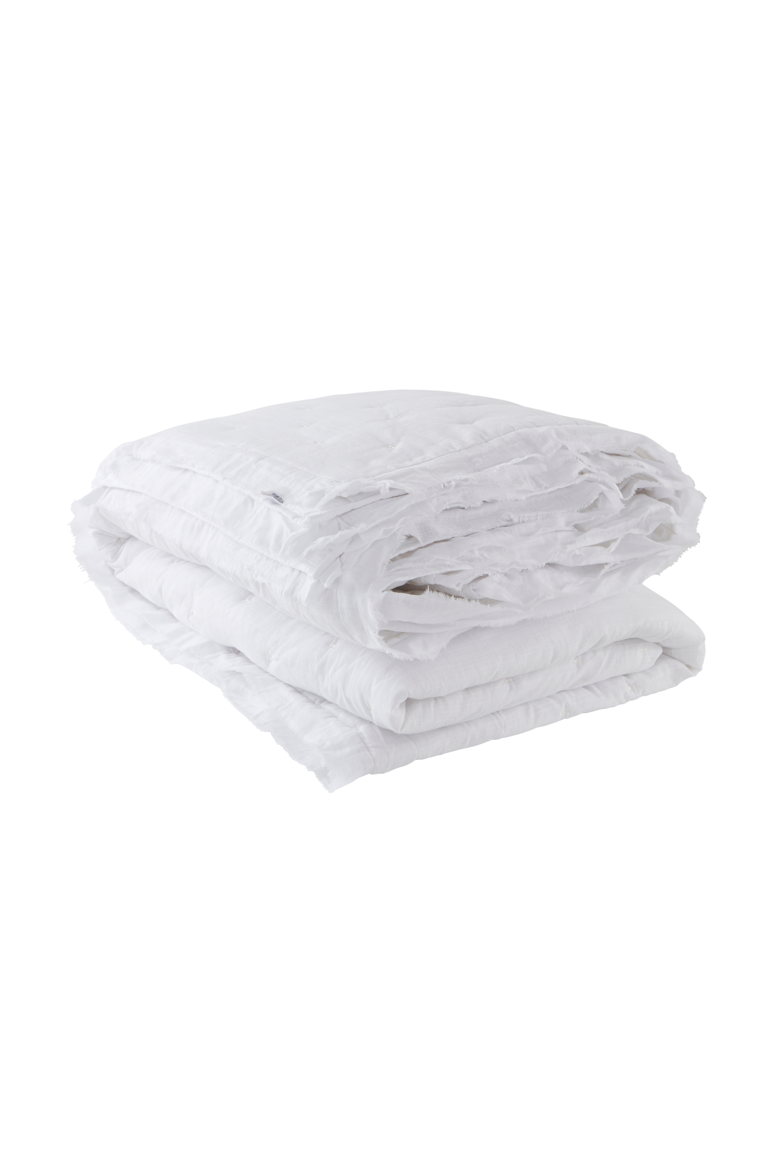 Sengeteppe for enkeltseng. Det er sydd i myk bomullsslubb som er plaggvasket, noe som betyr at sengeteppet er vasket etter søm. Slubbeffekten gir stoffet noe tekstur. Forsiden er pent melert, og har enkel quilting av broderte prikker som danner et diskre mønster som gir liv og samtidig holder fyllet på plass. Rå kant rundt forsterker den myke stilen. Sengeteppets bakside er av polyester. Obs! Putetrekk medfølger ikke, kjøpes separat.