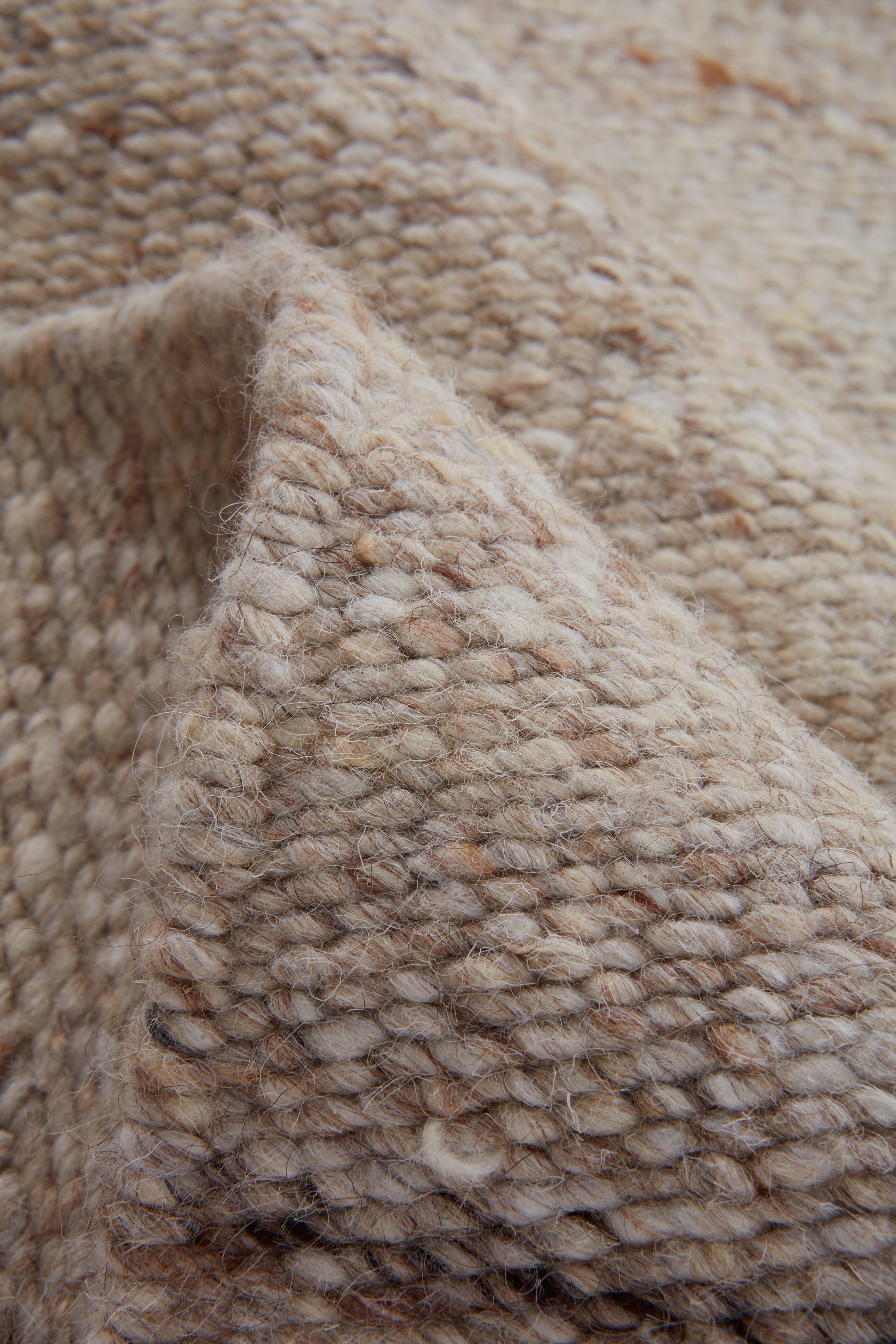 Håndvevd teppe i ull. Den fine kvaliteten gjør at teppet gir et naturlig inntrykk. 1800 g/m².