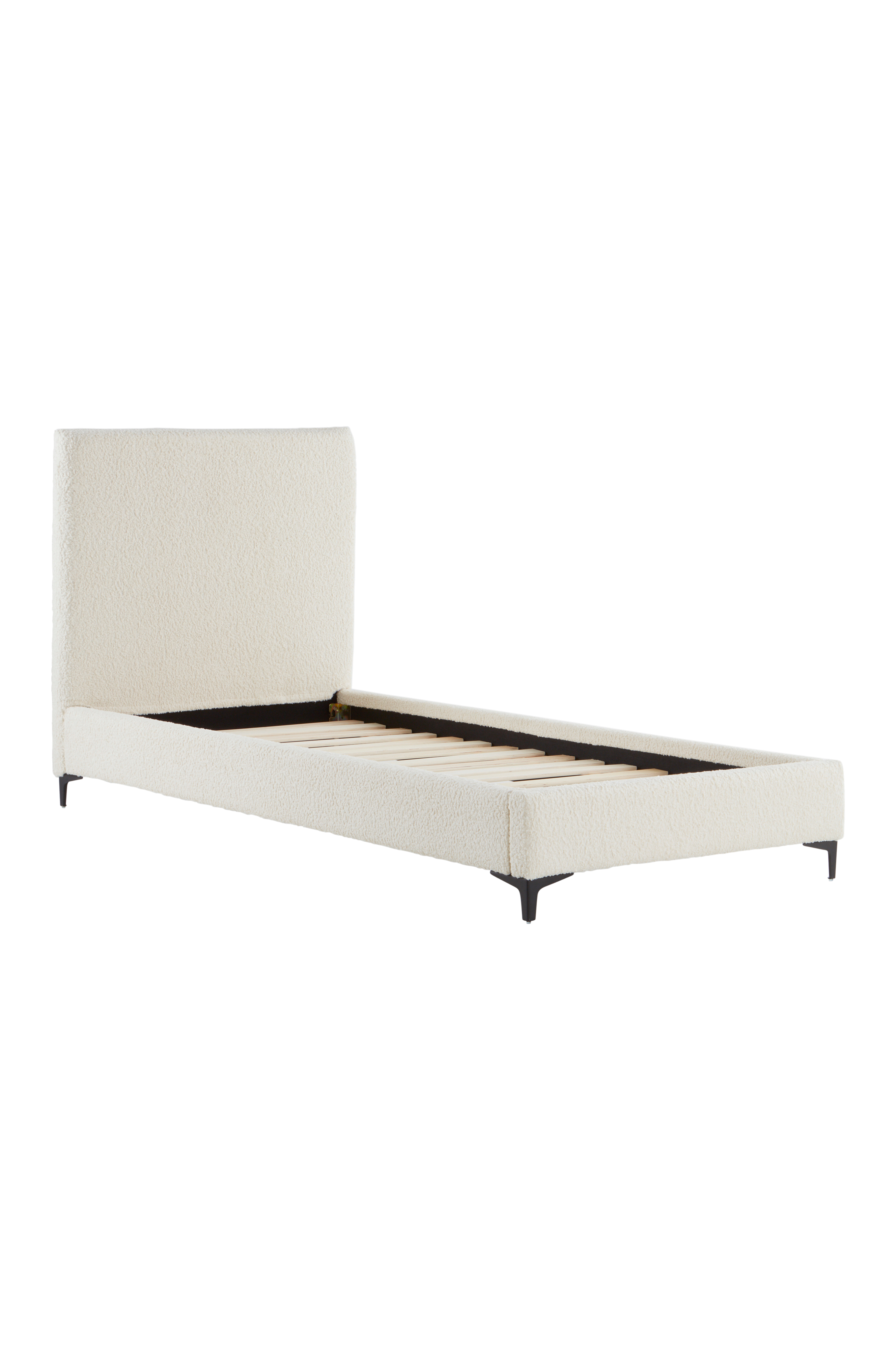 Barneseng med trekk i mykt teddystoff. Det robuste teddystoffet har slitestyrke på 100 000 Martindale. Stammen er av massivt tre og kryssfiner med mykt skumfyll. En myk og koselig seng som passer perfekt når barnet har vokst fra juniorsengen. Sengen har ribbebunn og kompletteres med madrass i størrelse 90x200 cm. Madrass medfølger ikke.
