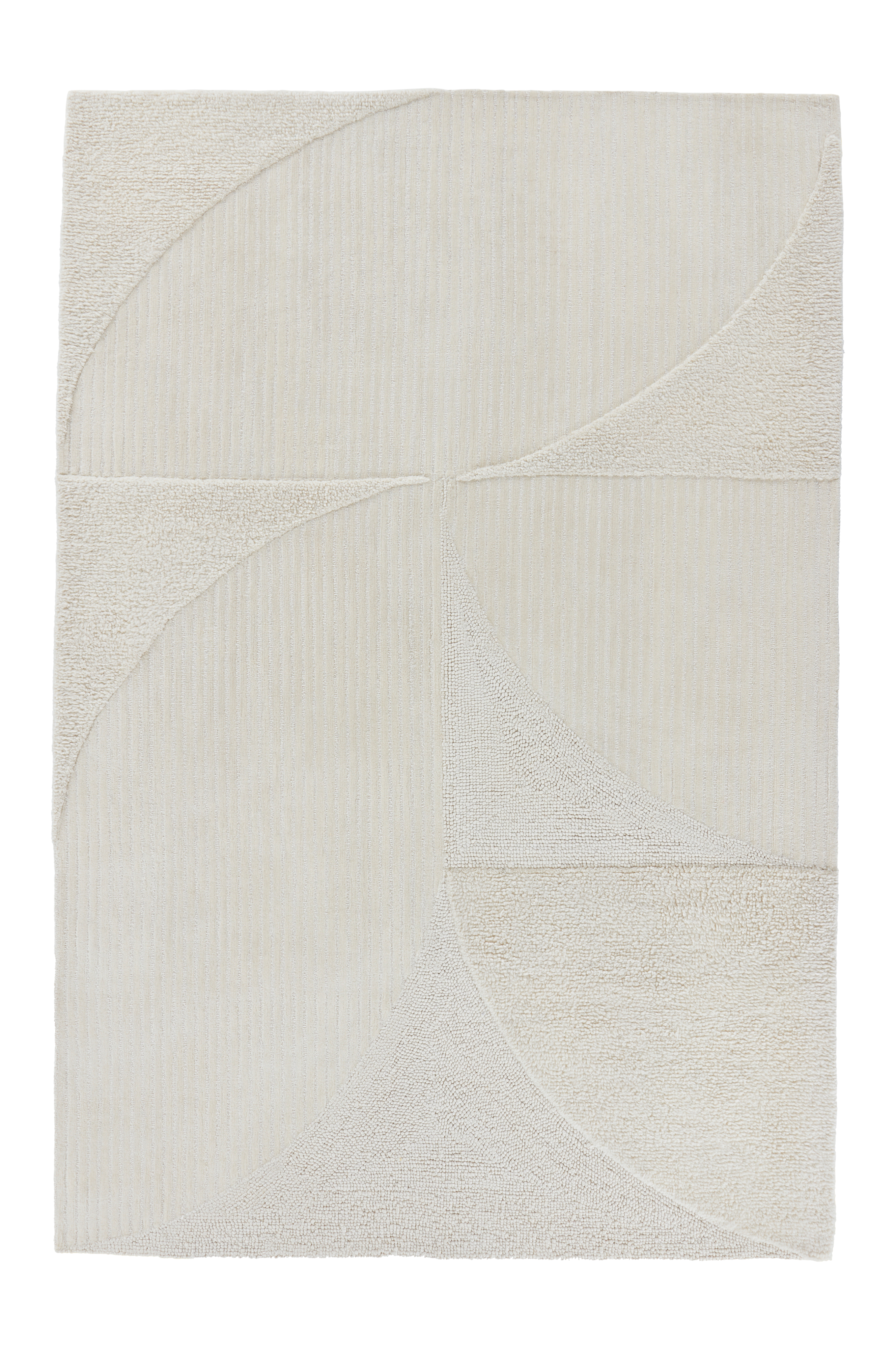 Håndtuftet ullteppe med diskre relieffmønster ton-i-ton som skapes av ulik høyde på luggen og ulik veveteknikk. Det tettvevde teppet har klippet lugg kombinert med vevde løkker. Et lyst teppe gir rom til rommet, og ull har en ekstra herlig følelse. Et håndlaget teppe er et fint håndverk, og hvert teppe er unikt. Lugghøyde løkker 0,5-0,6 cm, klippet lugg 2-2,2 cm. Tykkelse 2,2-2,4 cm. 3200-3400 g/m².