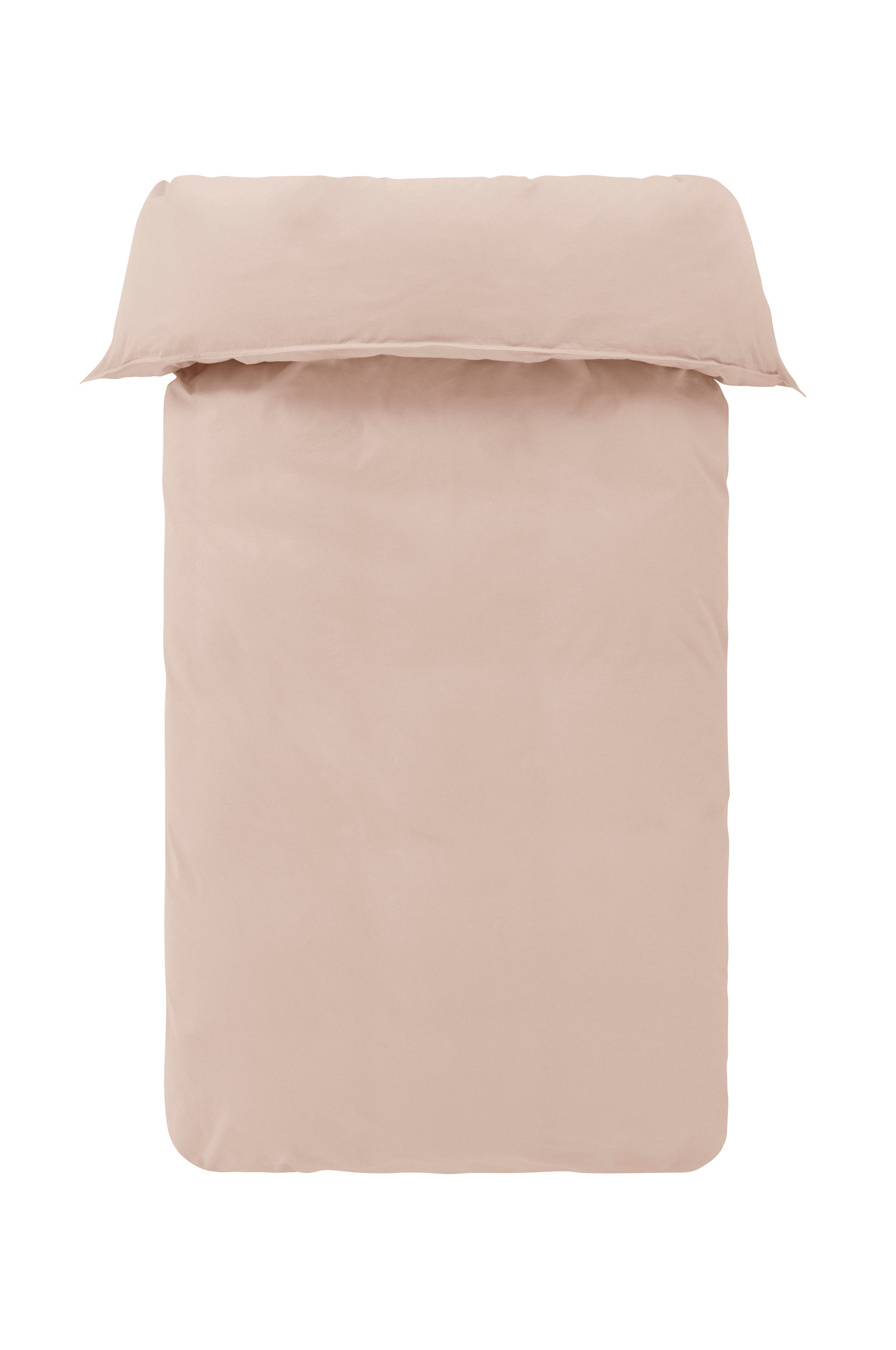 Dynetrekk av økologisk, plaggvasket bomullspercale. Å re opp med bomull er luftig og mykt mot kroppen. Trådtetthet på 200 tc. (Trådtettheten forteller om antallet tråder, thread counts, pr. kvadrattomme i et stoff. Jo høyere trådtetthet, desto høyere kvalitet).