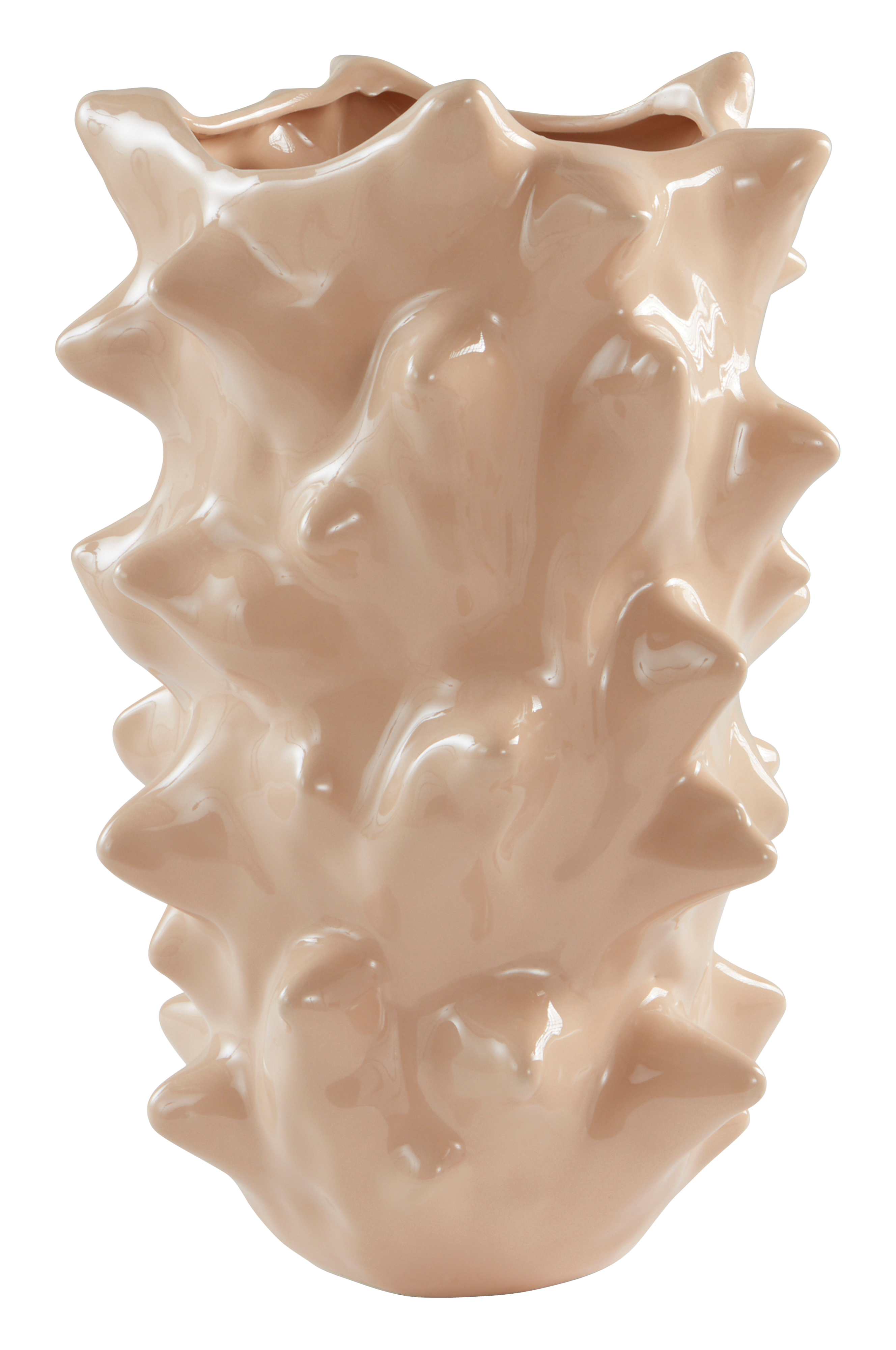 Håndlaget vase av keramikk med blank glasur som er vakker sammen med grønne planter. Innsiden er også glasert. Et visst avvik kan forekomme ettersom vasen er håndlaget. Keramikk kan slippe gjennom fukt.