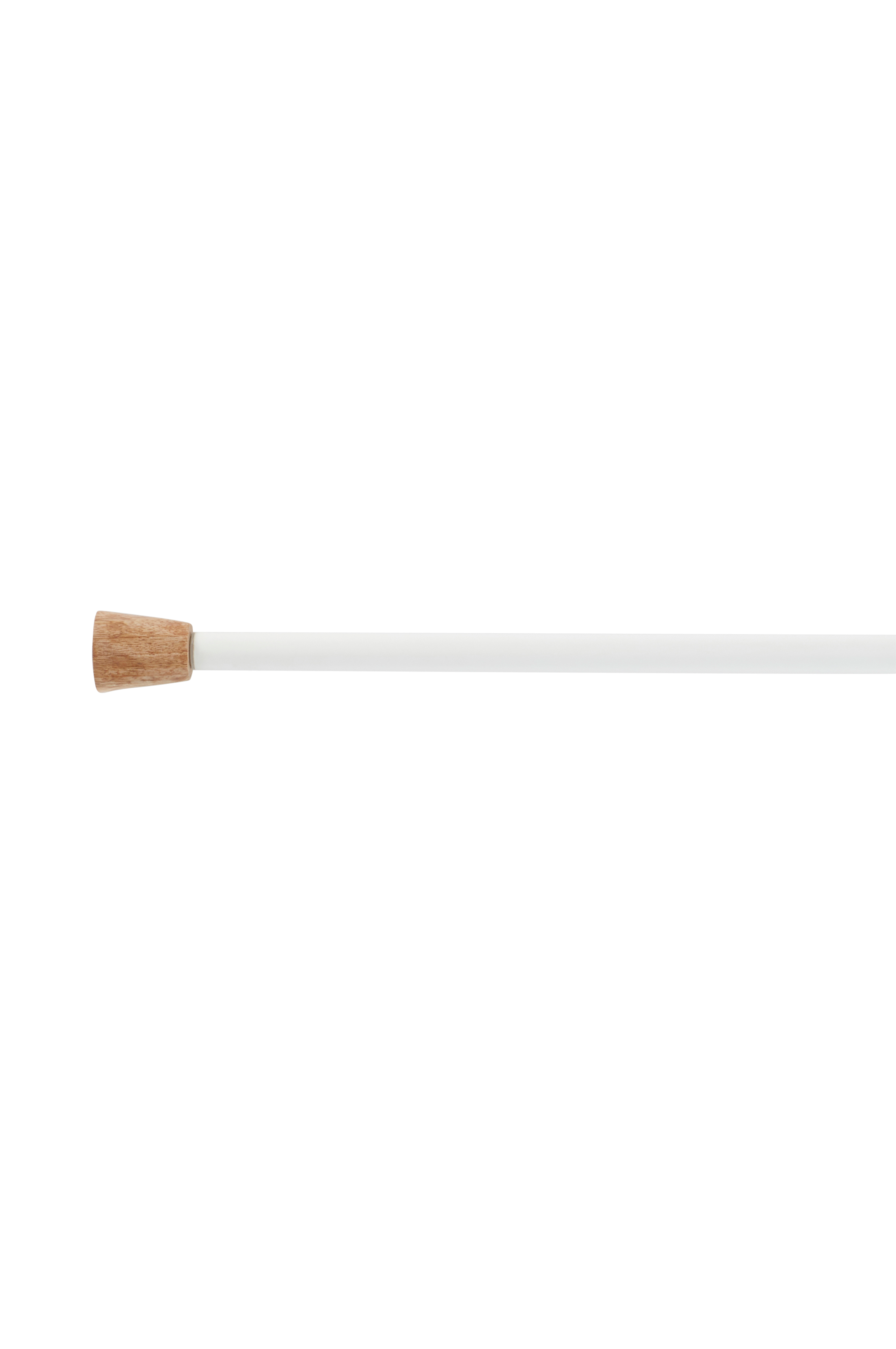 Gardinstang av jern med elegant formede endeknotter av FSC-sertifisert tre. Gardinstangens lengde er justerbar. Endeknottene skrues på. Fem veggfester, skruer og plugg inkludert. Husk at det alltid er underlaget som bestemmer hvilken type festemetode som er best egnet ved montering.