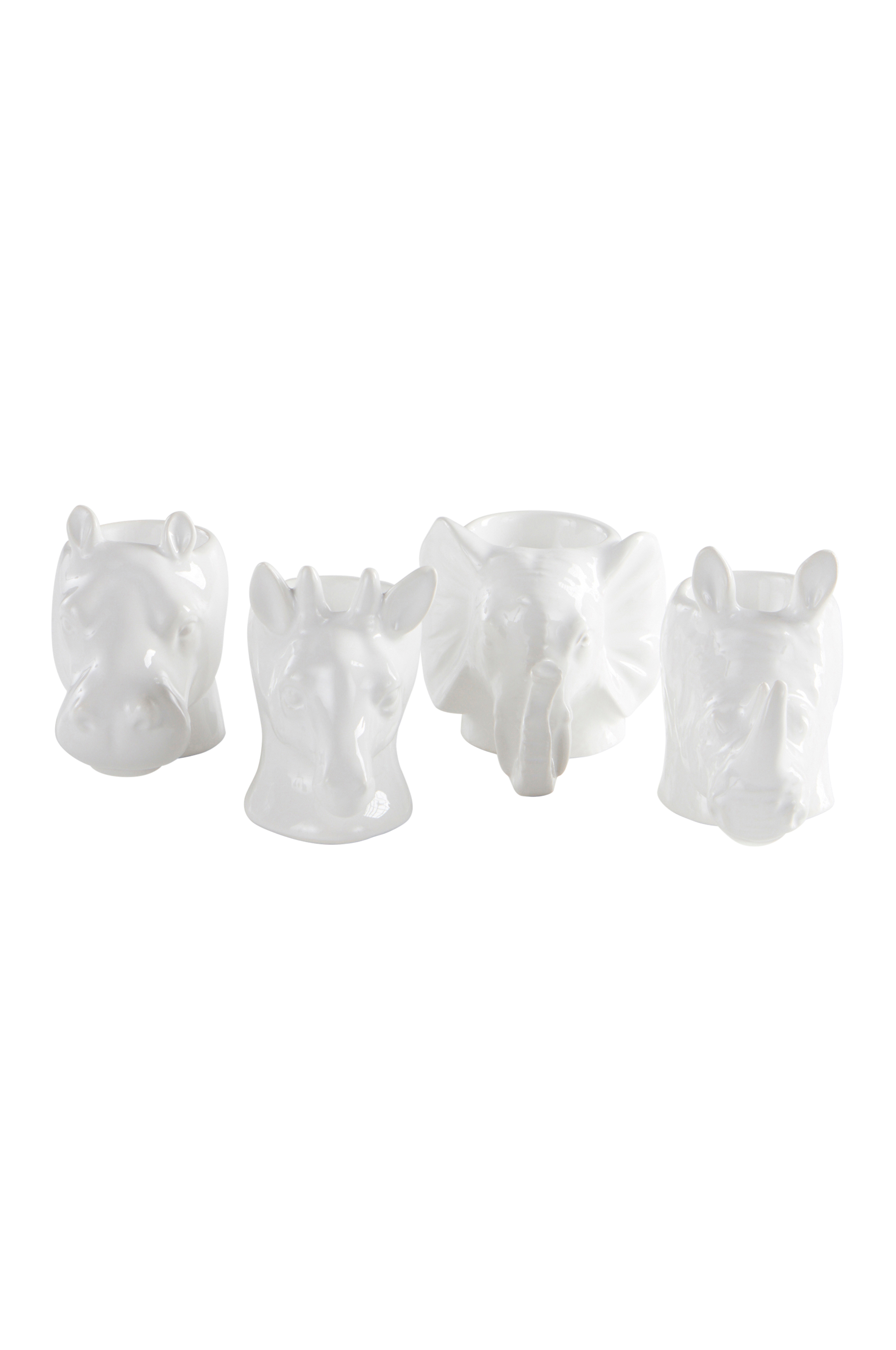 4-pk eggeglass i dolomittporselen. Eggeglassene har et lekent design med motiv av ulike dyr: en flodhest, en elefant, et nesehorn og en sjiraff.