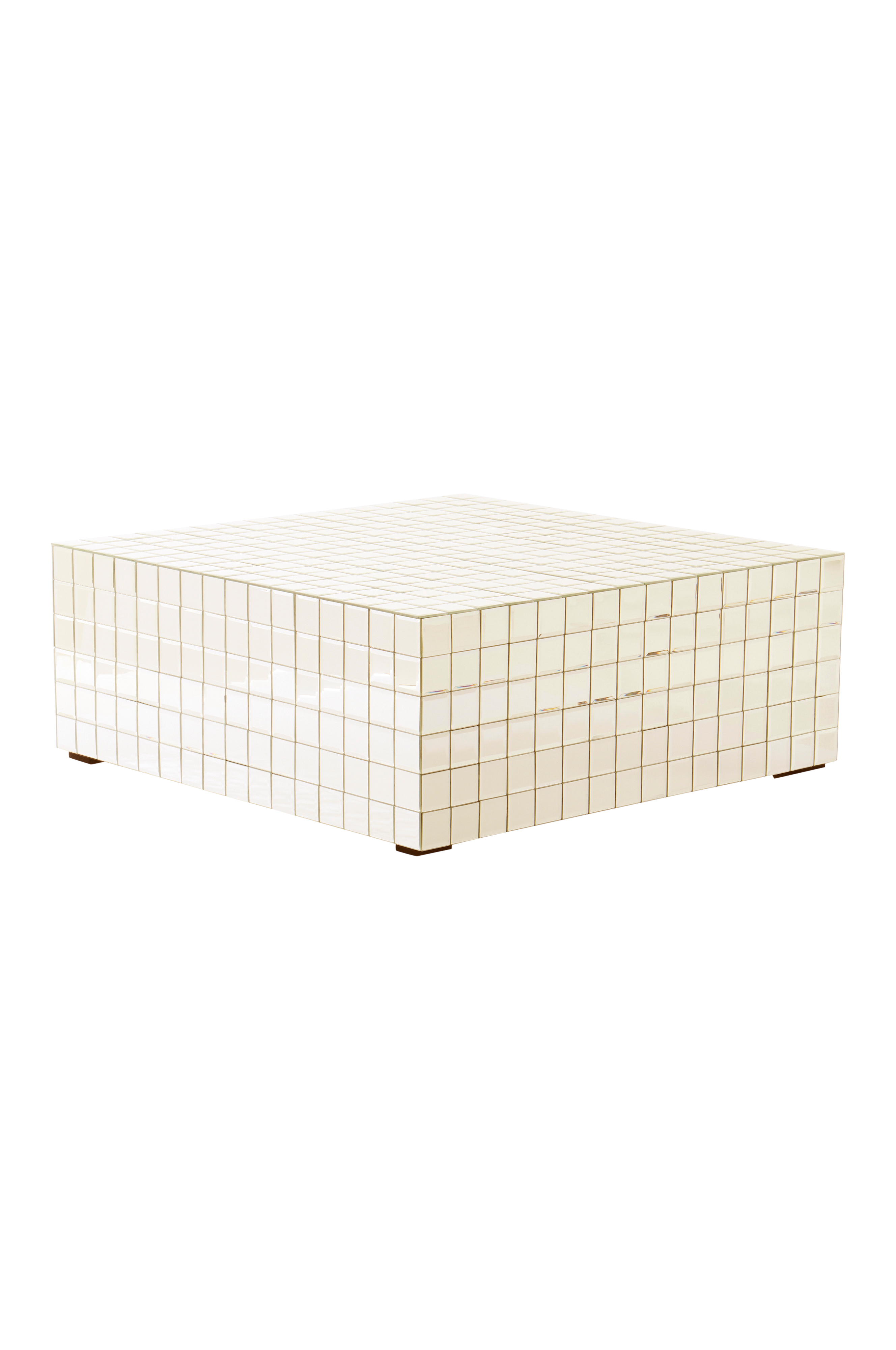 Kvadratisk sofabord i speilmosaikk hvor hver liten mosaikkbit har slipte kanter. Stammen er av FSC-sertifisert MDF. Det luksuriøse sofabordet løfter rommet og gir en glamorøs touch. Bordet er lavt med herlig loungefølelse.