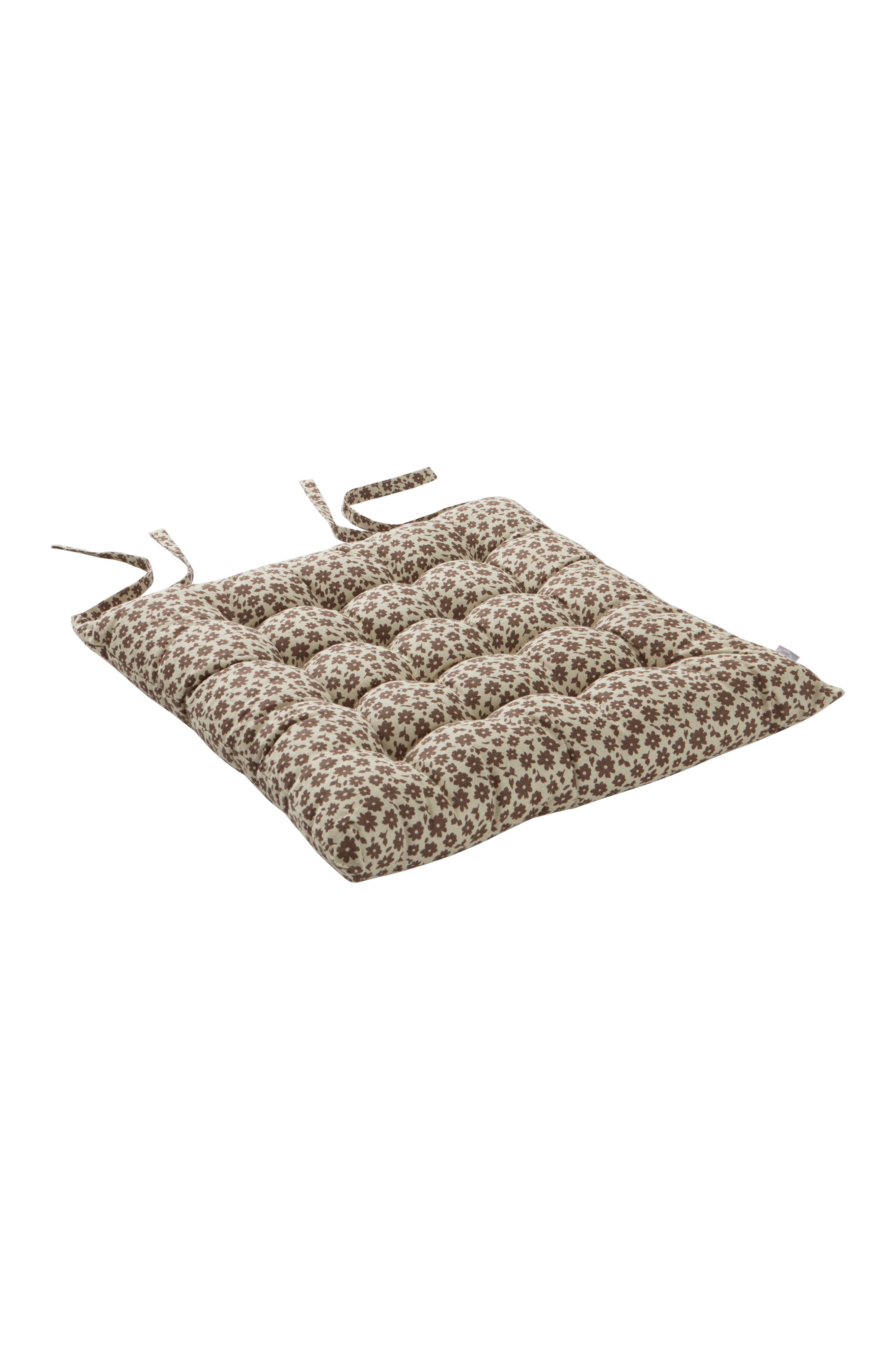 1-pk sittepute i fin kvalitet av lin og bomull med trykt småblomstrete mønster. Det herlige småmønstrede stoffet gir en følelse av nostalgi og siste nytt i en perfekt miks. Sitteputen har knytebånd i bakkant, og er stoppet med polyestervatt.