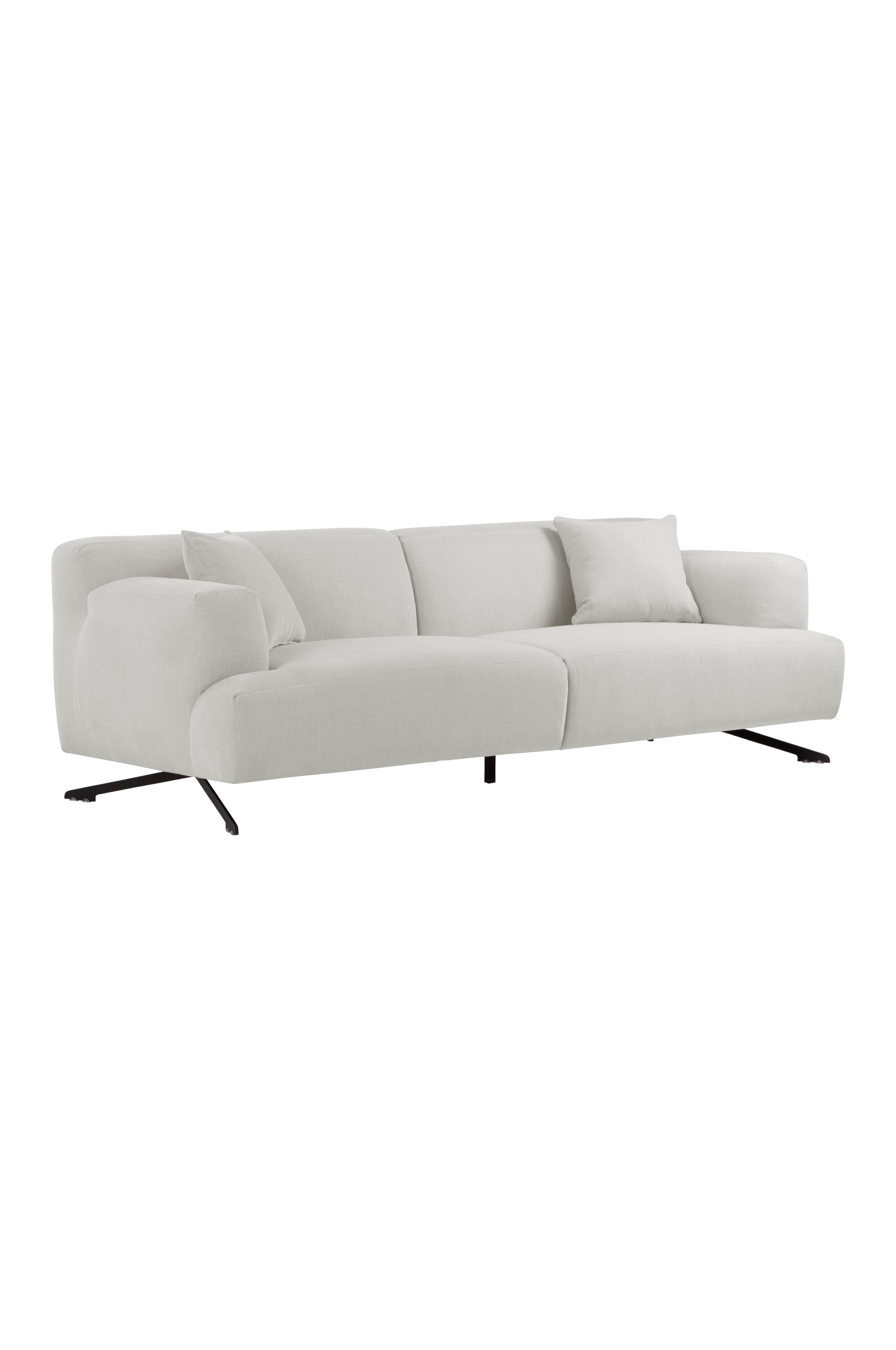 EDE 3-seters sofa er en sjenerøs og innbydende sofa med myke former, og de svarte metallbena står i fin kontrast til det myke. De brede armlenene er en behagelig detalj, og for de som er mer estetisk anlagt, er fargene tiltalende og føles nye og forfriskende. Sofaen har en kryssfinérramme med myk skumgummipolstring som gir en fantastisk sittekomfort. Bena har svart pulverlakk.