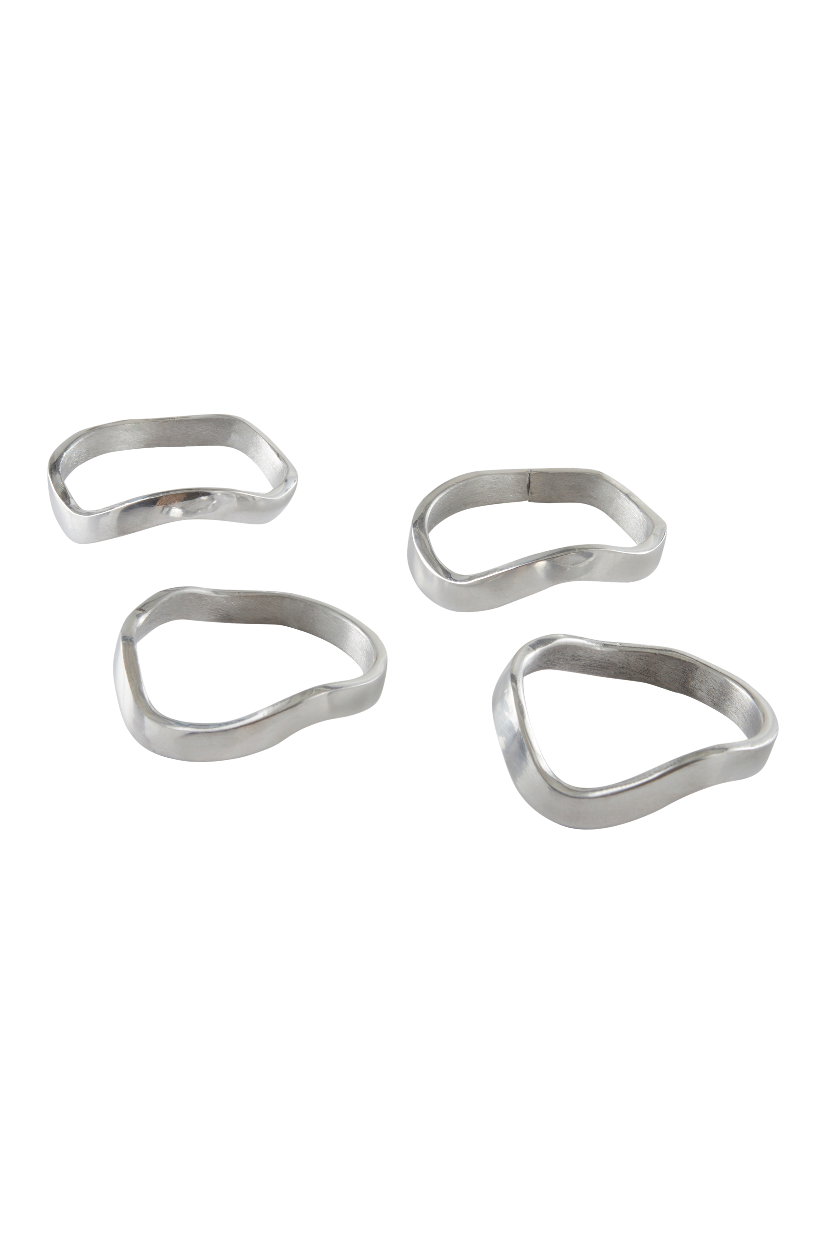 4-pk serviettringer av pulverlakkert aluminium. De organisk og uregelmessig formede ringene gir oppdekkingen med tekstilservietter en myk følelse.