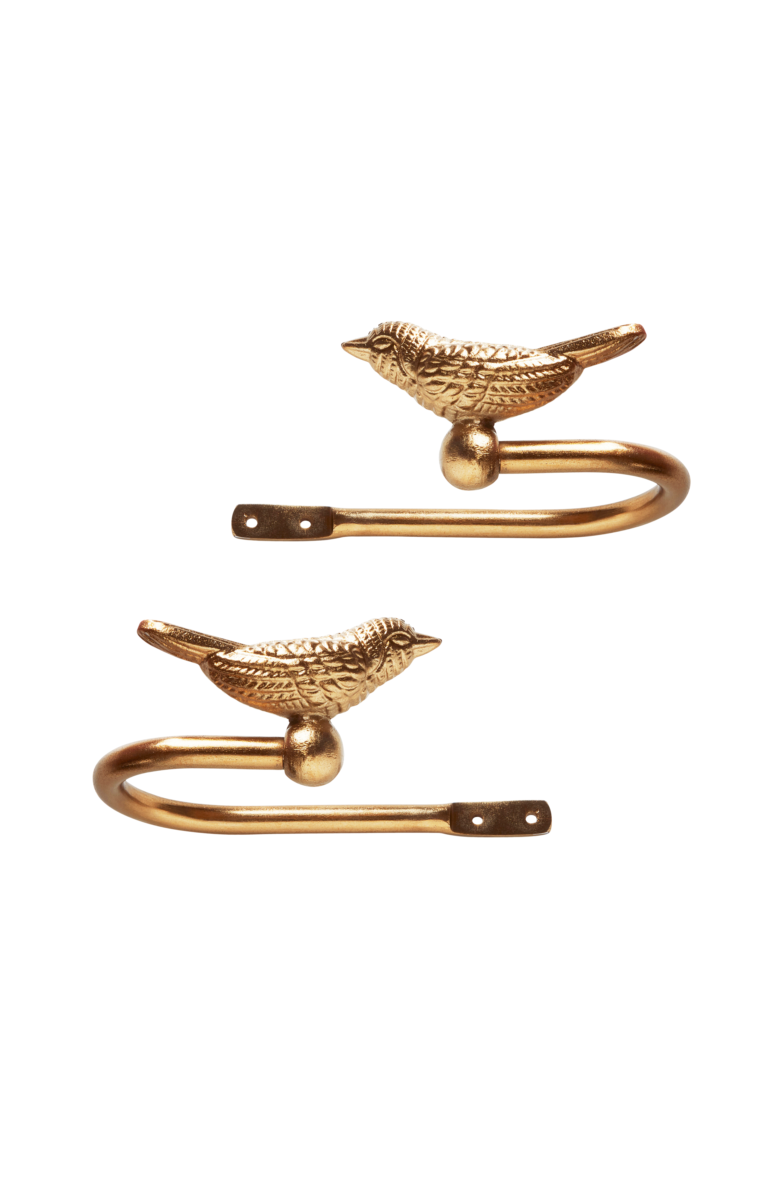 Beskrivelse: 2-pk gardinholdere av metall med dekorativ metallfugl. Plugg og skruer inkludert. Veggavstand 9 cm.
