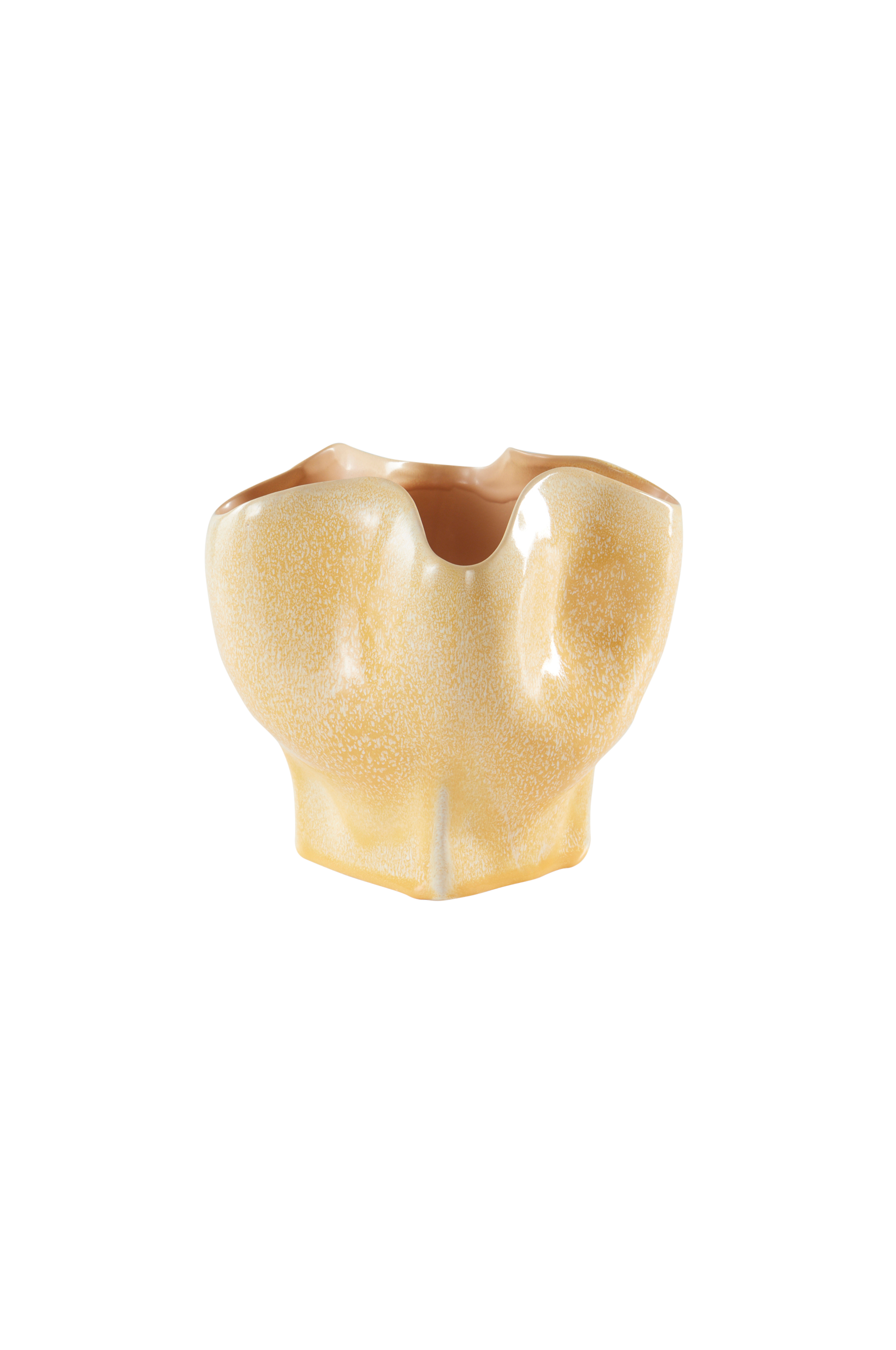 Ikke fullt så gult og mye bredere/mer åpent enn hvordan det ser ut på bildet. Føles mer som en skjev gryte enn en vase.