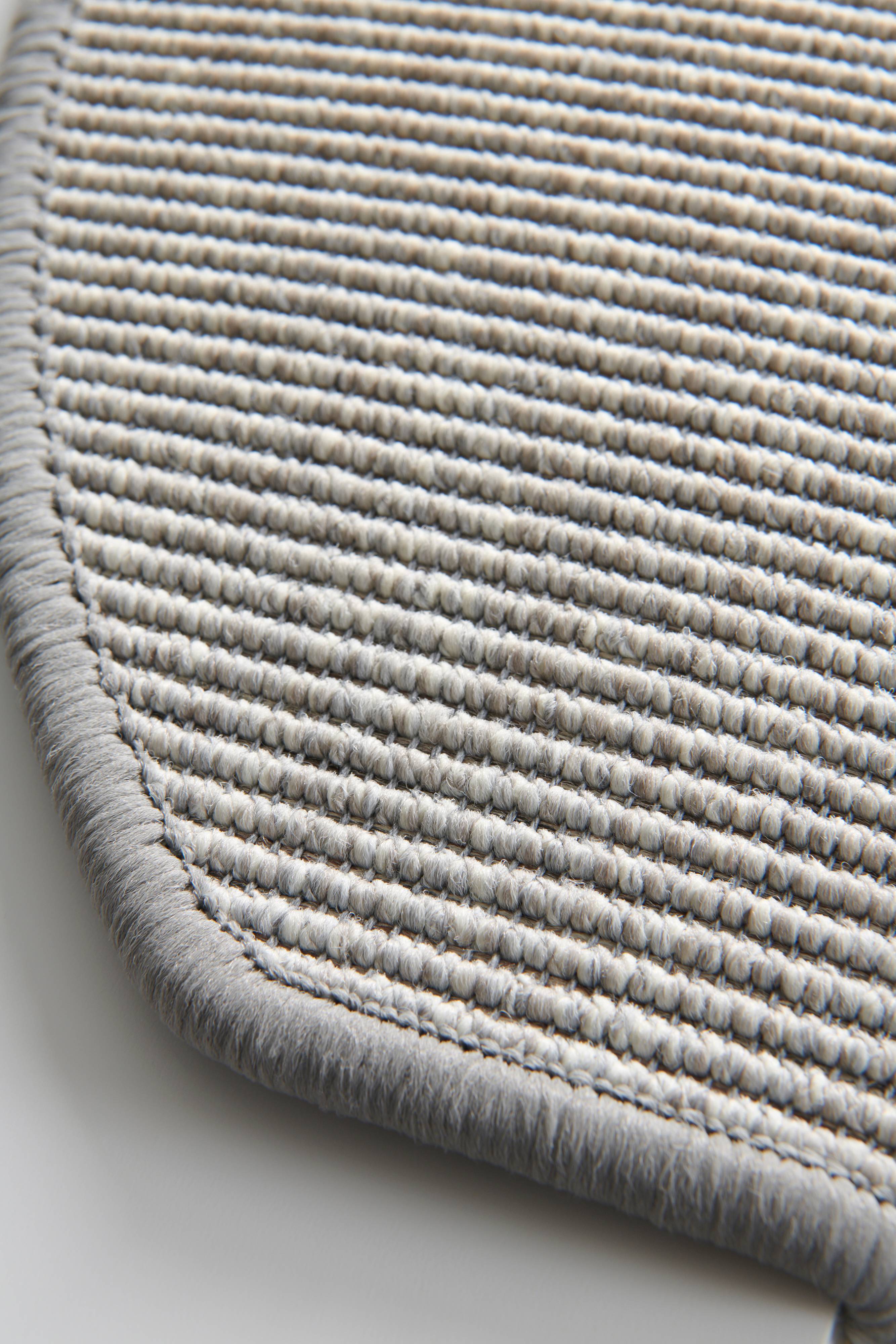 Før montering: Rengjør og støvsug trappen. Støv og lo gjør at limet ikke fester seg ordentlig. Trappeteppene kommer med en innbrettet kant. Brett opp kanten og la deretter teppet ligge og hvile ca. 12 timer før montering slik at teppet rekker å justere seg.