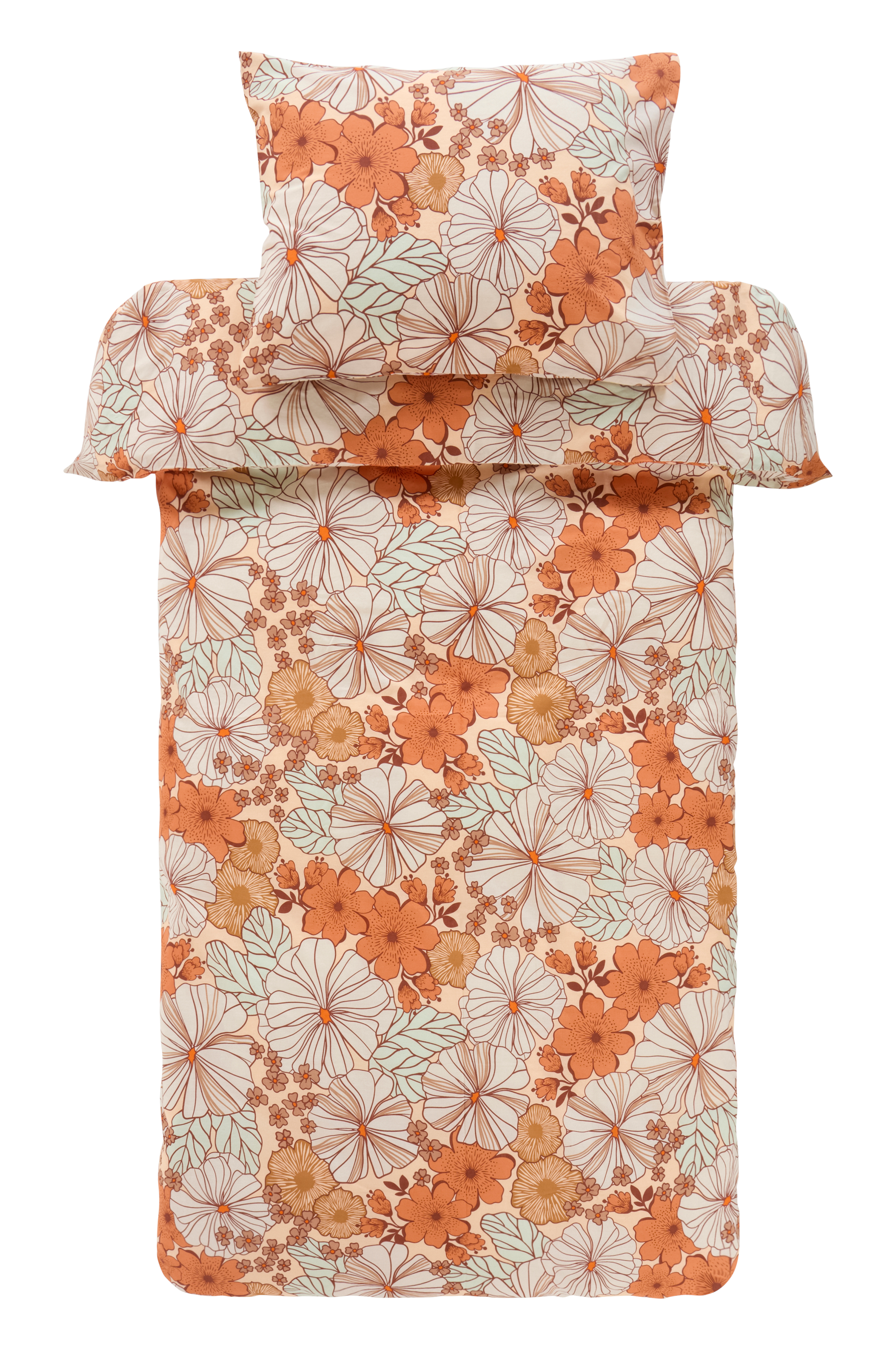 Oppdag FIORI, et herlig dynetrekk for enkeltsenger med et mønster designet av Maria Carlberg, med et sjarmerende retro-blomstertrykk. Settet er laget av myk, fintrådet, tettvevd bomull som er behandlet med enzymvask for ekstra mykhet. Det består av et dynetrekk med praktiske håndhull og trykknapper for enkel bruk. Det matchende putevaret har en klassisk lukking med klaff, noe som gjør settet enda mer tiltalende og komfortabelt. Perfekt for å gi nytt liv til soverommet ditt med et snev av blomstereleganse.