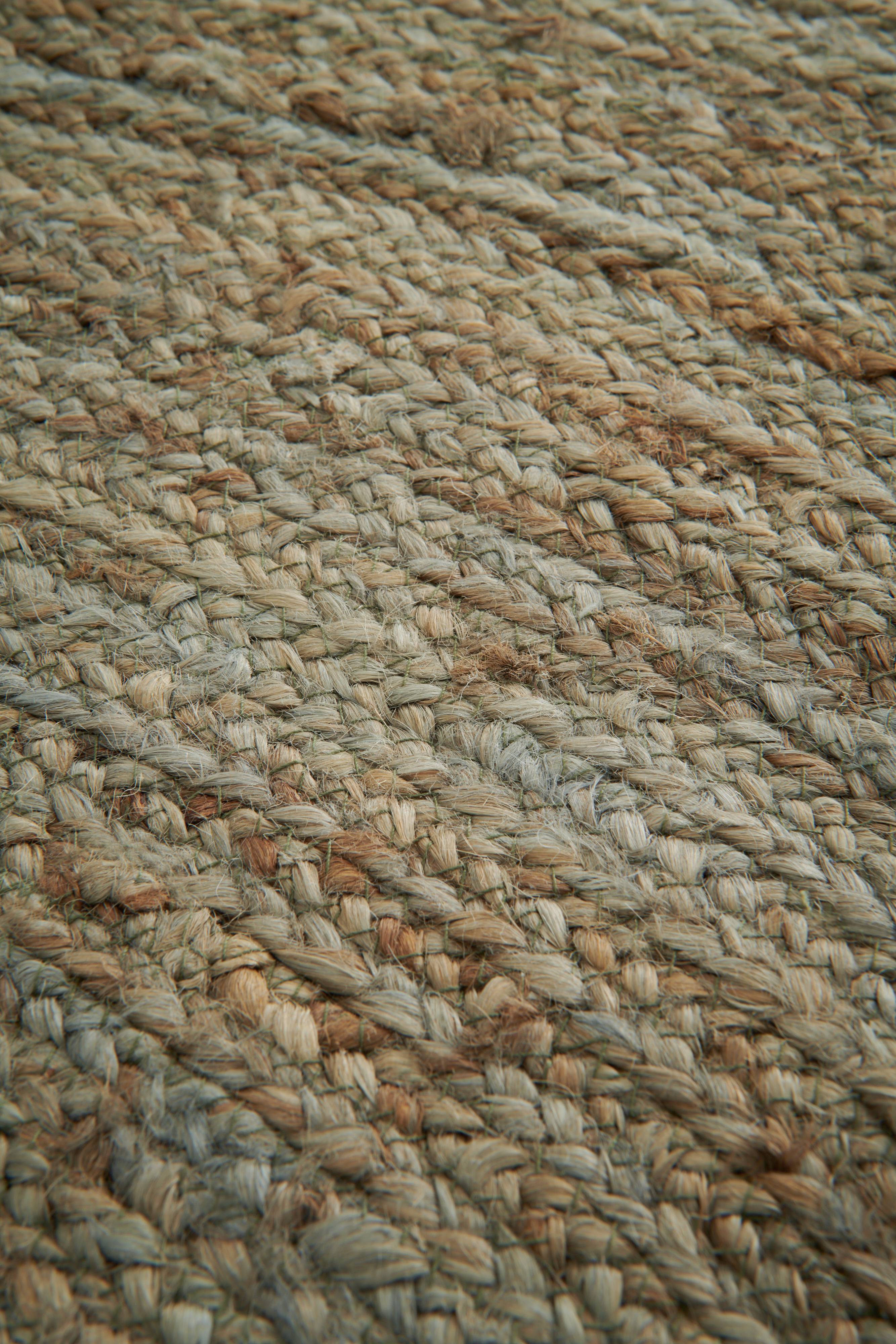 Håndvevd juteteppe med et sirkelmønster i jordnære nyanser. FLISS gjør raskt rommet ditt hjemmekoselig. 1700-1800 g/m².