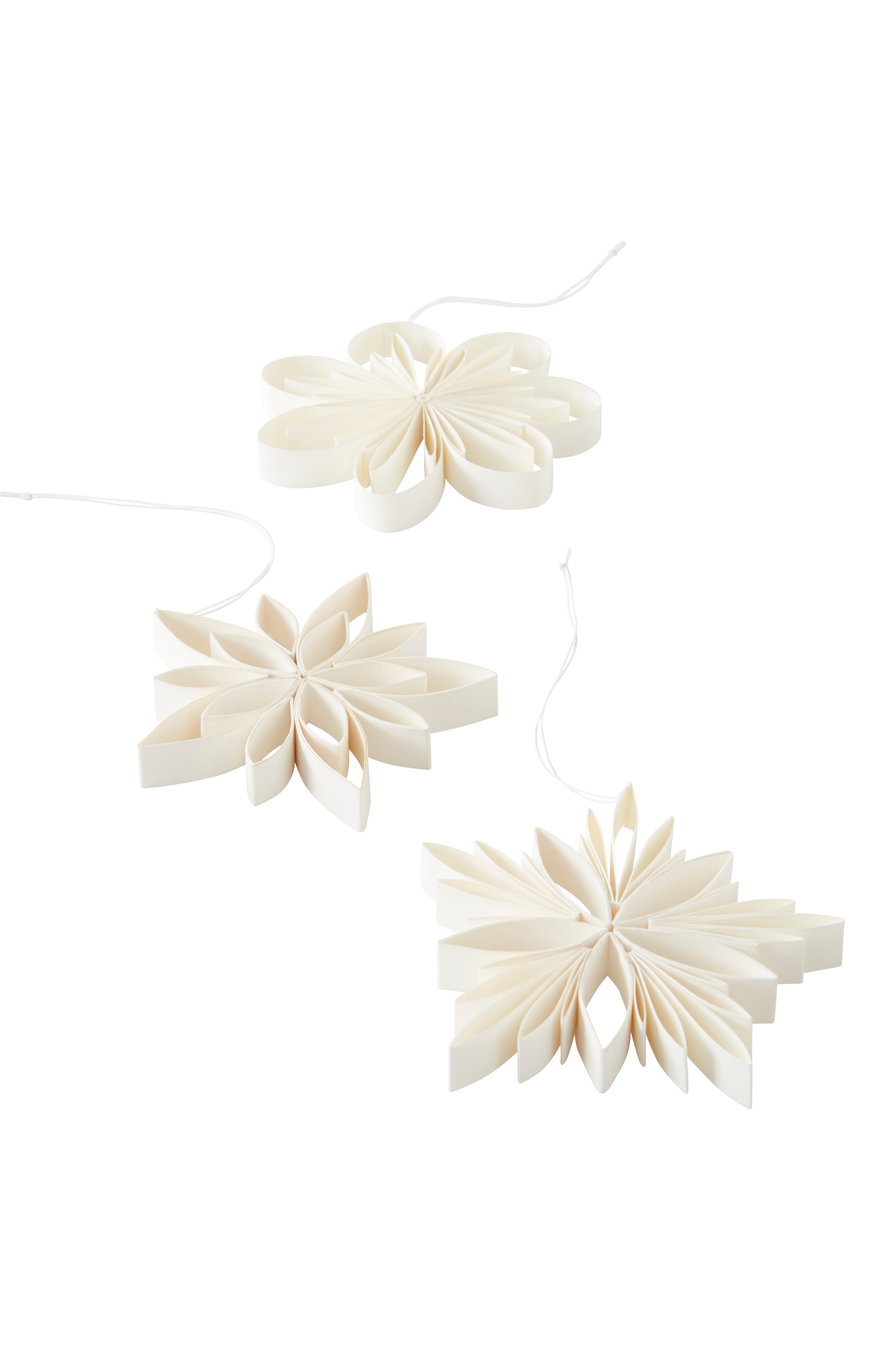3-pakning med håndlagde stjerner av papir. Stjernene er ulike og alle har en løkke slik at du kan henge dem i et vindu, i juletreet eller der du vil pynte litt ekstra. Håndverket gjør hver dekor unik. Stjernene kommer i en papireske.