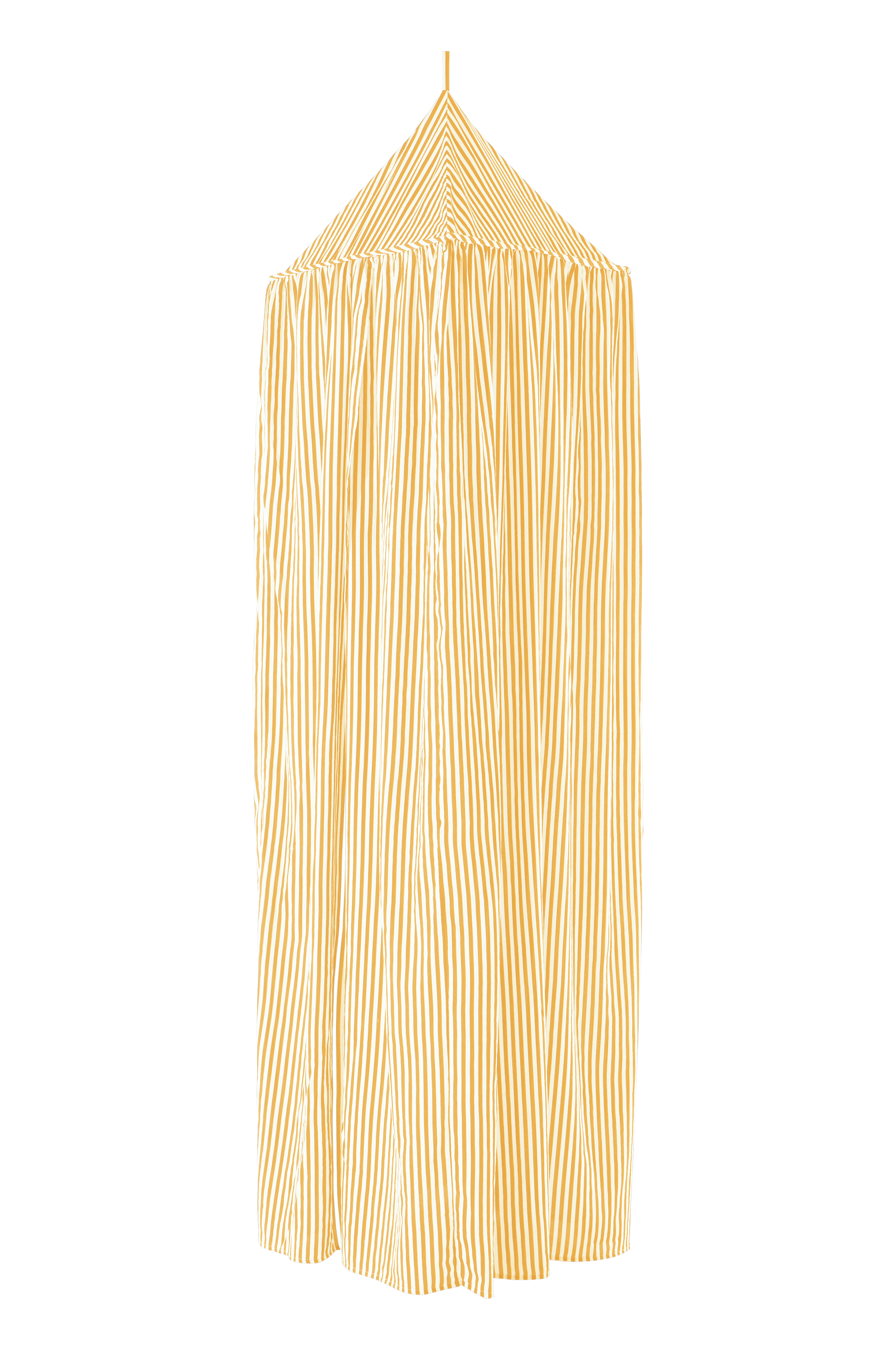 En sengehimmel i polyester og bomull med stripemønster, åpen foran, skaper en koselig atmosfære over barnesengen. FRANNY-mønsteret kan brukes til et temabarneværelse.