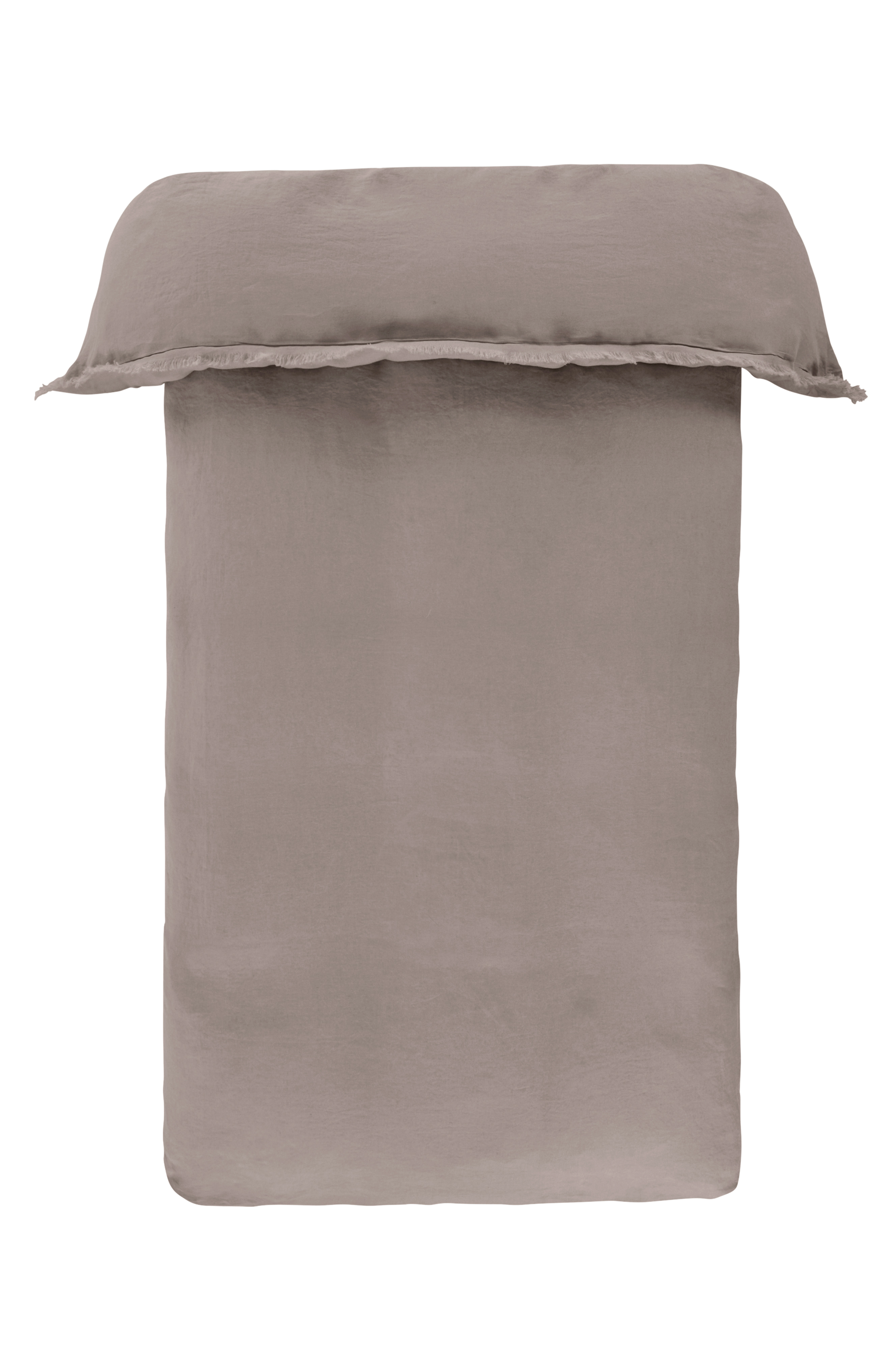Dynetrekk laget av vasket lin. Lin er et fint naturmateriale med spesielle egenskaper og en herlig følelse. FRINNY er like stilig som det er mykt og behagelig, og den ensfargede linserien er helt tidløs. Lin er varmt når det er kaldt, og kjølig å sove i når det er varmt. Når linet vaskes, får det en enda mykere tekstur som er behagelig mot huden. I FRINNY-serien har alle plaggene doble sømmer og rå kanter med en liten frynse rundt. Knapper for lukking i dynetrekket.
