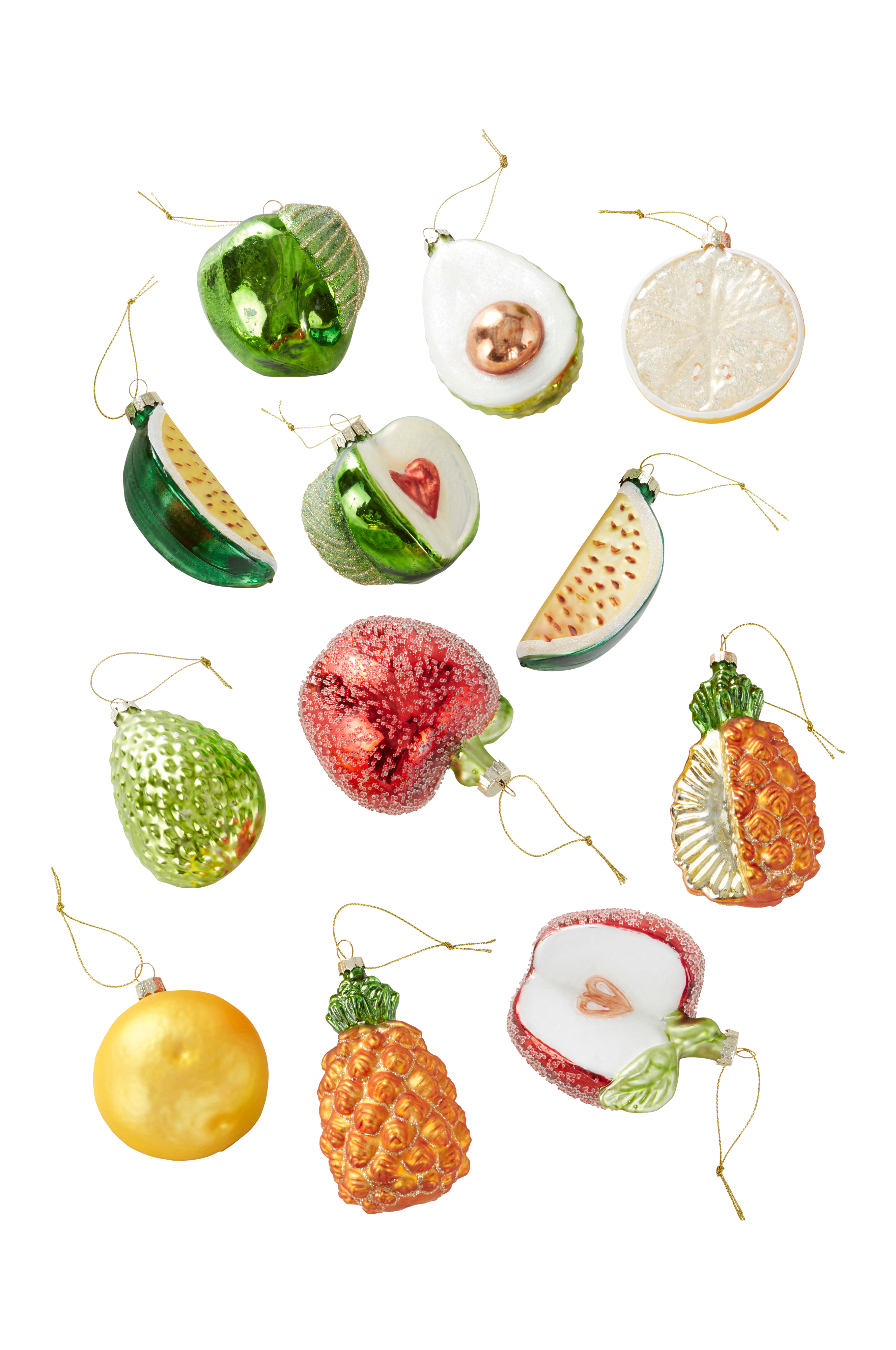 Fruktdekorasjoner positivt overrasket. De var etter min mening litt for store for vårt ømme juletre, men fungerte desto bedre som kjøkkenjulepynt lagt ut på et fruktfat.