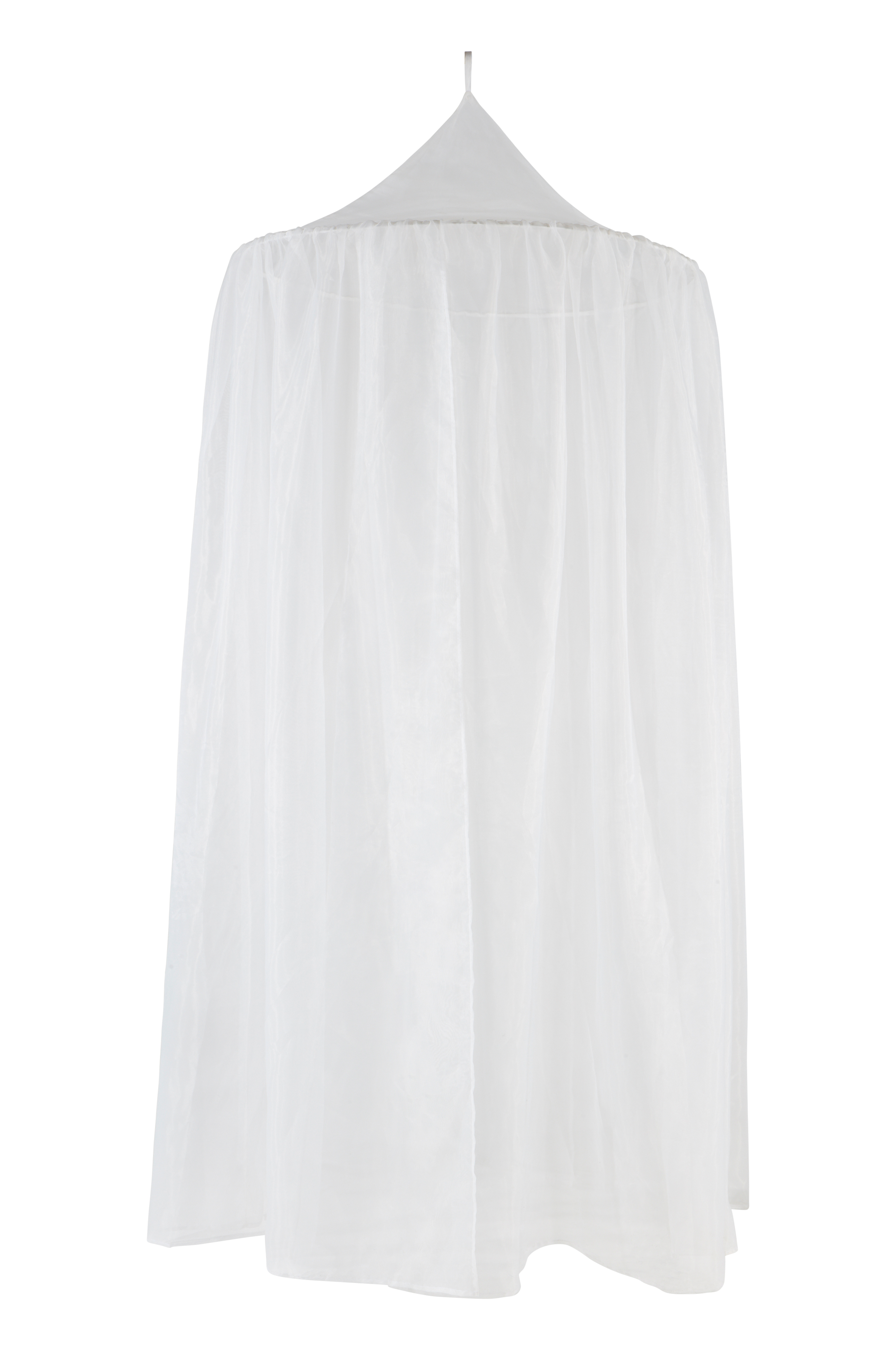Sengehimmel i tynn og transparent organza av polyester. Denne sengehimmelen er rund øverst og åpen både i forkant og bakkant, noe som er en fordel hvis du ønsker en sengelampe på veggen bak sengen. Denne størrelsen passer til en bred seng, for eksempel dobbeltseng. Organza er noe gjennomsiktig og slipper gjennom lys.