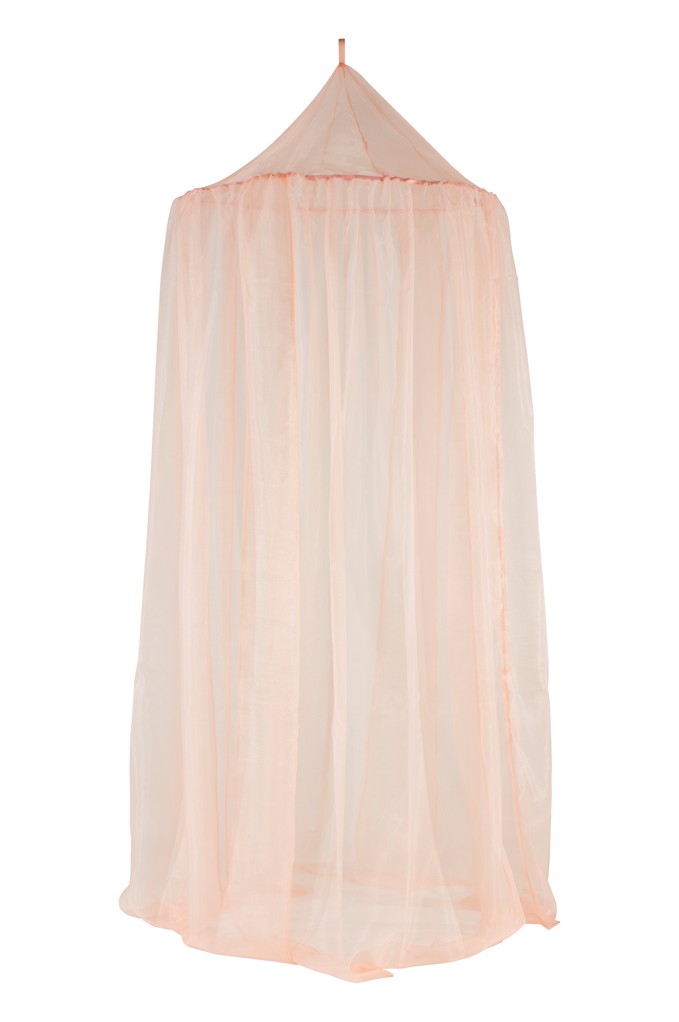 Sengehimmel i tynn og transparent organza av polyester. Denne sengehimmelen er rund øverst og åpen både i forkant og bakkant, noe som er en fordel hvis du ønsker en sengelampe på veggen bak sengen. Denne størrelsen passer til en bred seng, for eksempel dobbeltseng. Organza er noe gjennomsiktig og slipper gjennom lys.