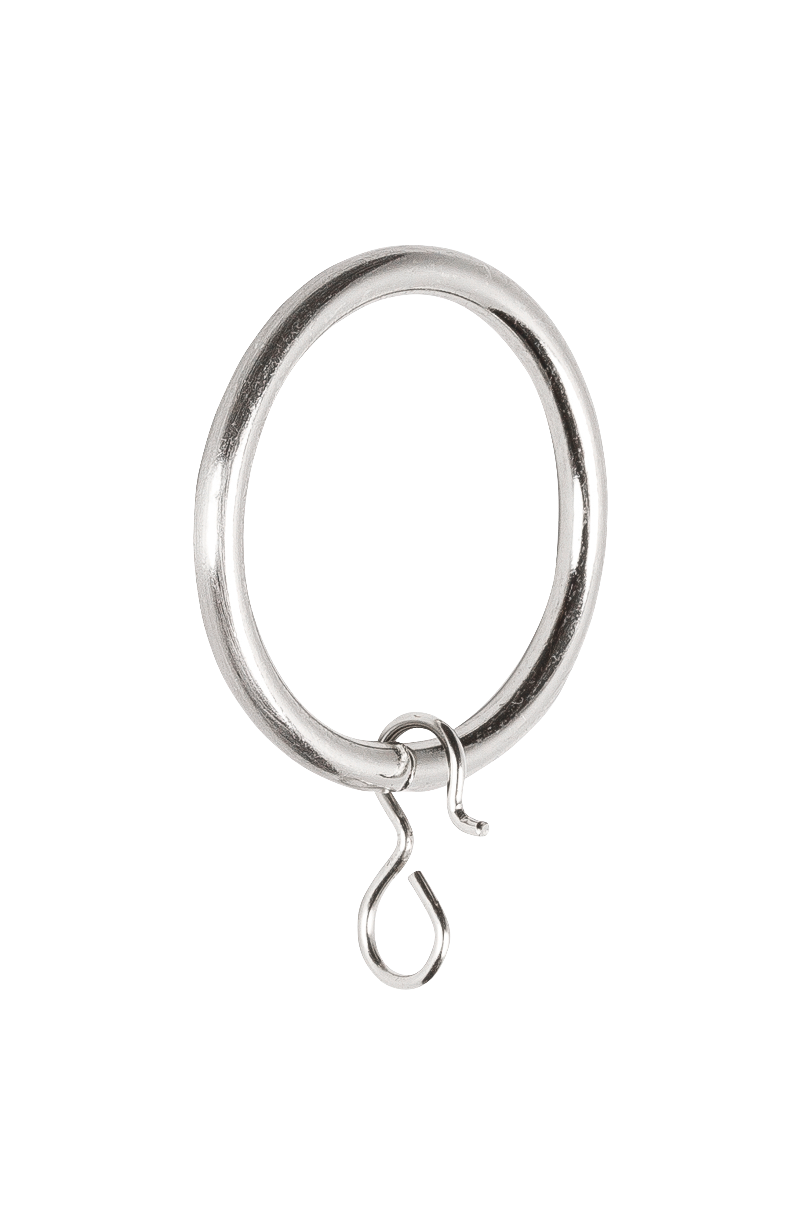 10-pk gardinringer av metall. Kirsch RIM gjør det enkelt å henge opp gardinlengder med fingerkrok eller rynkebåndskrok på en pen gardinstang. Hver ring har en liten løkke som du trer rynkebåndskroken eller fingerkroken gjennom.