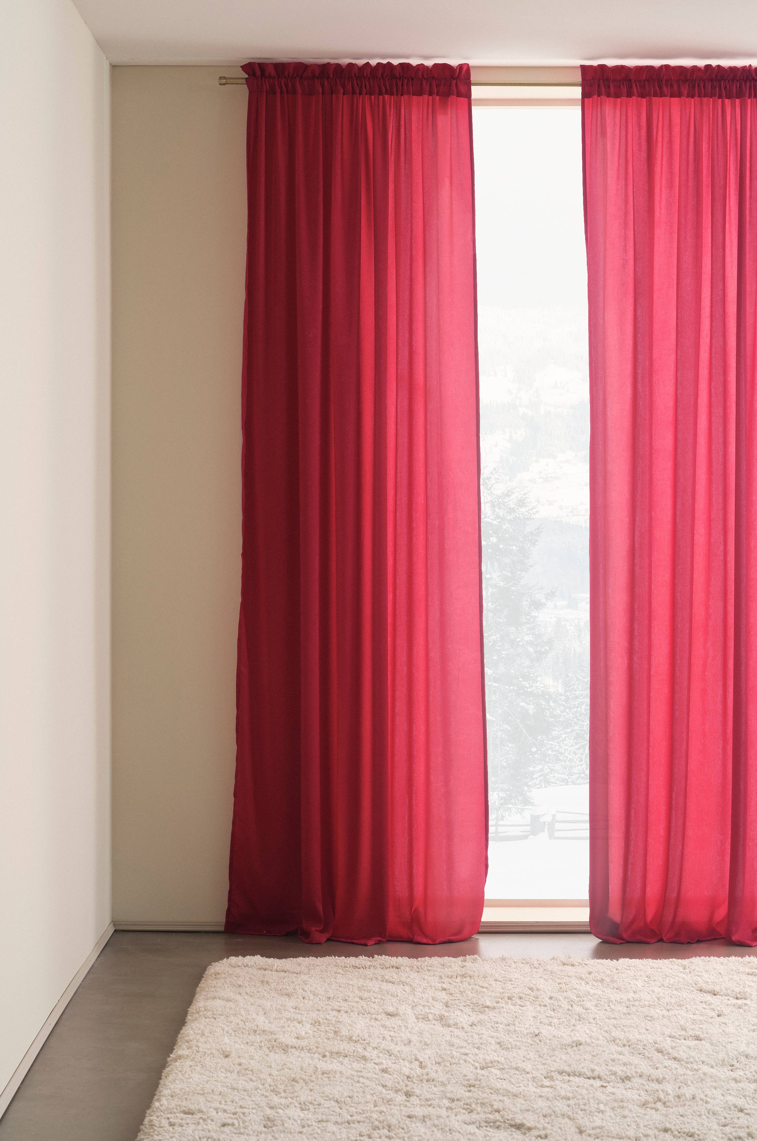 Tynne gardiner ikke så brede, helst skulle man hatt doble. Fallet på gardinen blir fint, nydelig farge.