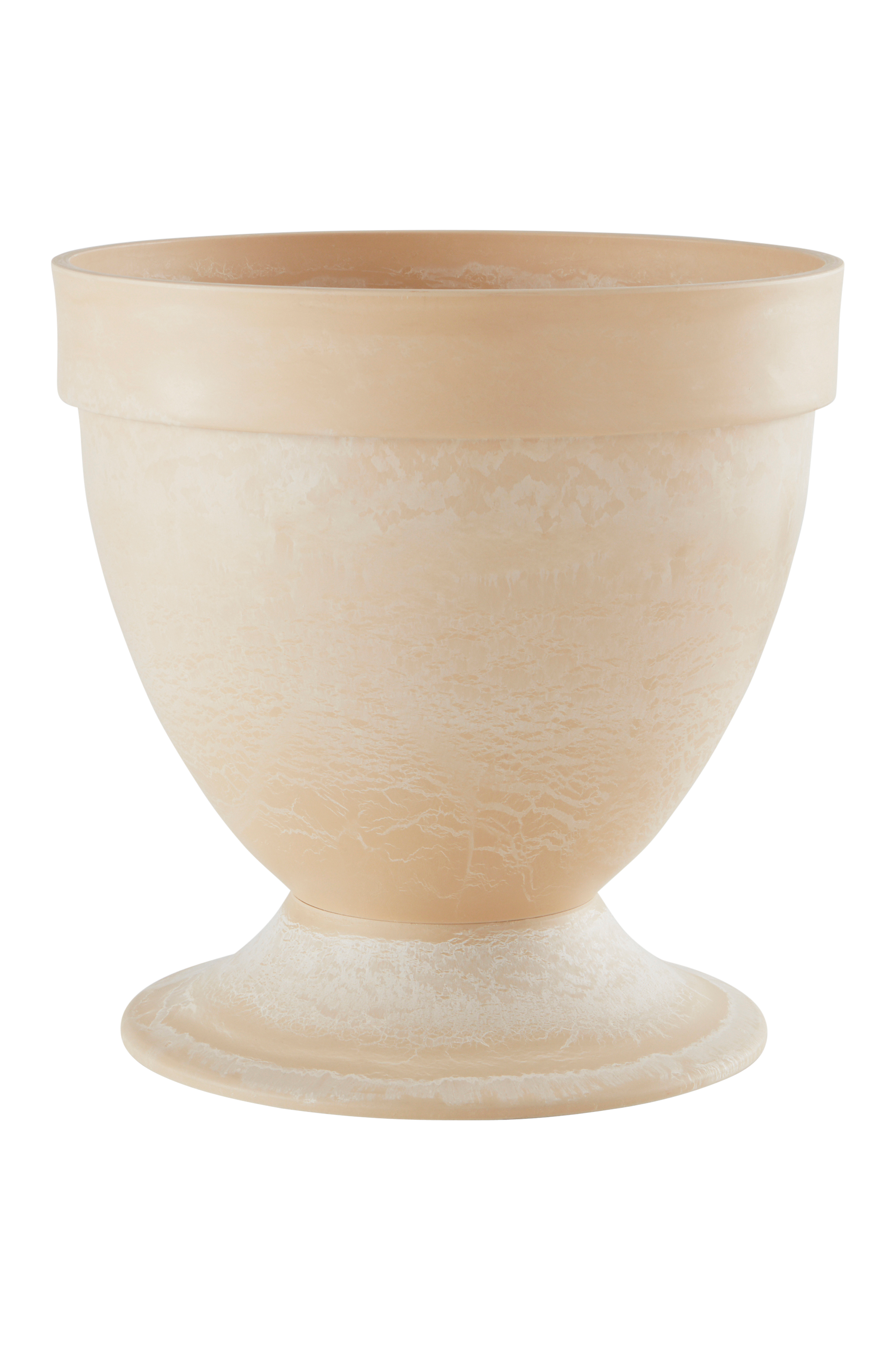 GINNY er en utendørspotte i fin rund form på fot, og er produsert av gjenvunnet komposittmateriale. Fordelen med materialet er at potten er lett å håndtere, den er robust og veier en brøkdel av en leire- eller steinpotte. Potten fungerer selvsagt like fint innendørs.