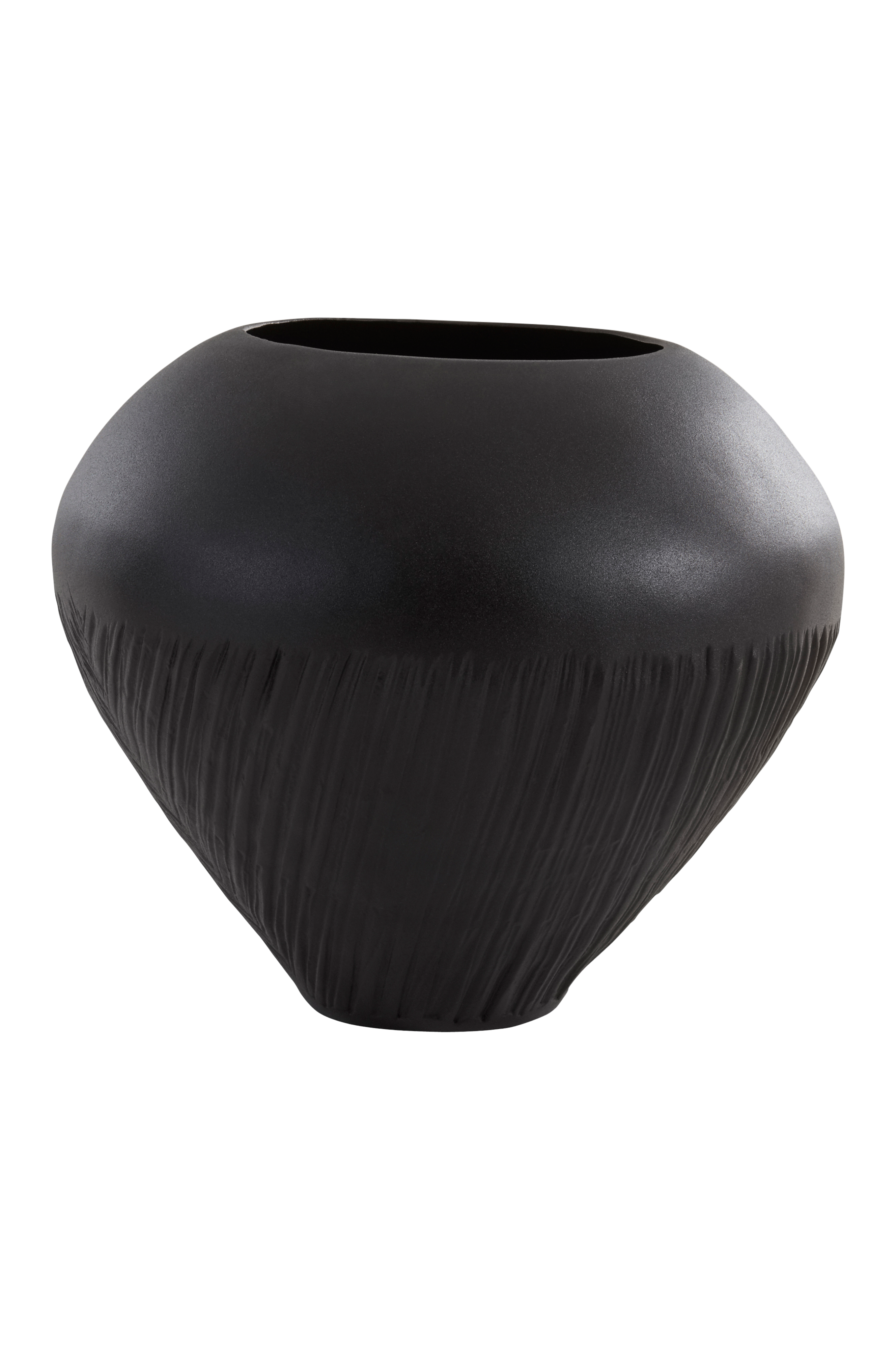 Vase av aluminium med mattsvart overflate. Vasen er vakkert formet og kan også brukes som potte. Aluminium er et rustfritt materiale med lav vekt.