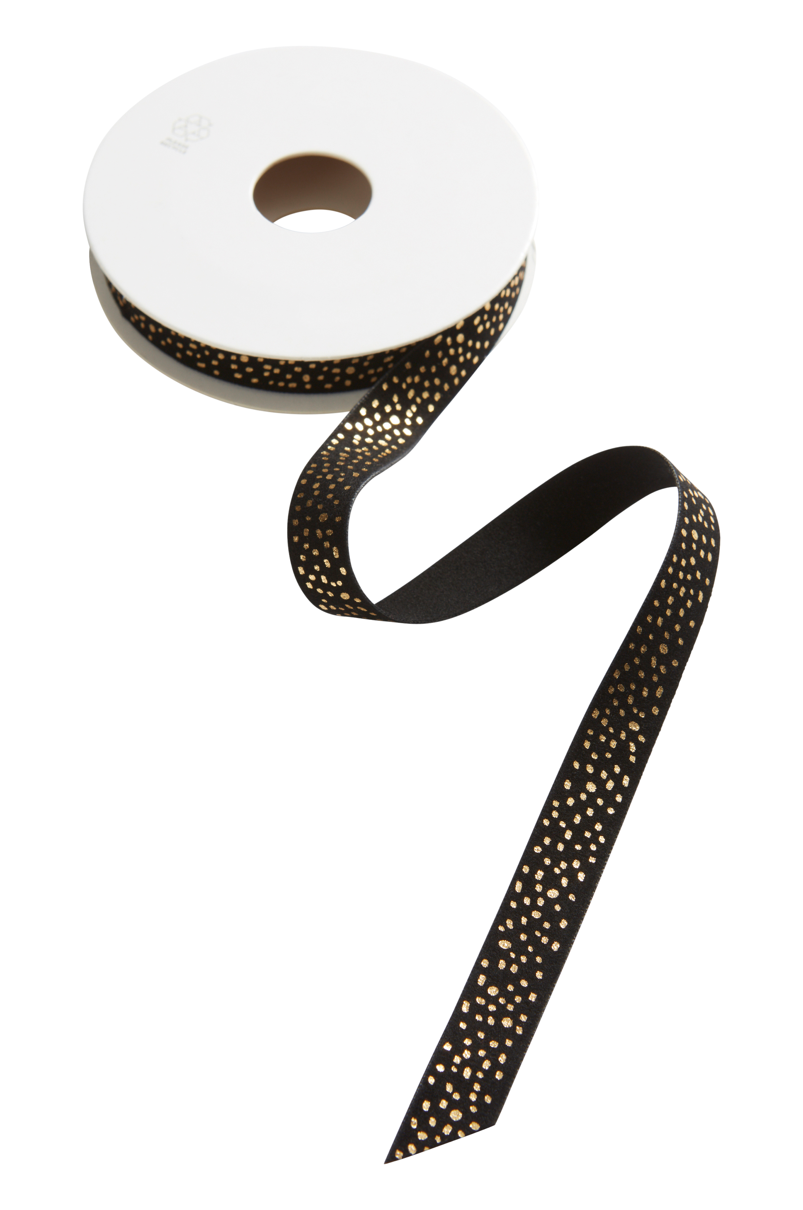Dekorbånd med gullflekker, et bånd som gir presanger og julegaver en ekstra luksuriøs følelse. Båndet er også fint å pynte med hvis du gir bort en flaske med olivenolje, saft eller gløgg.