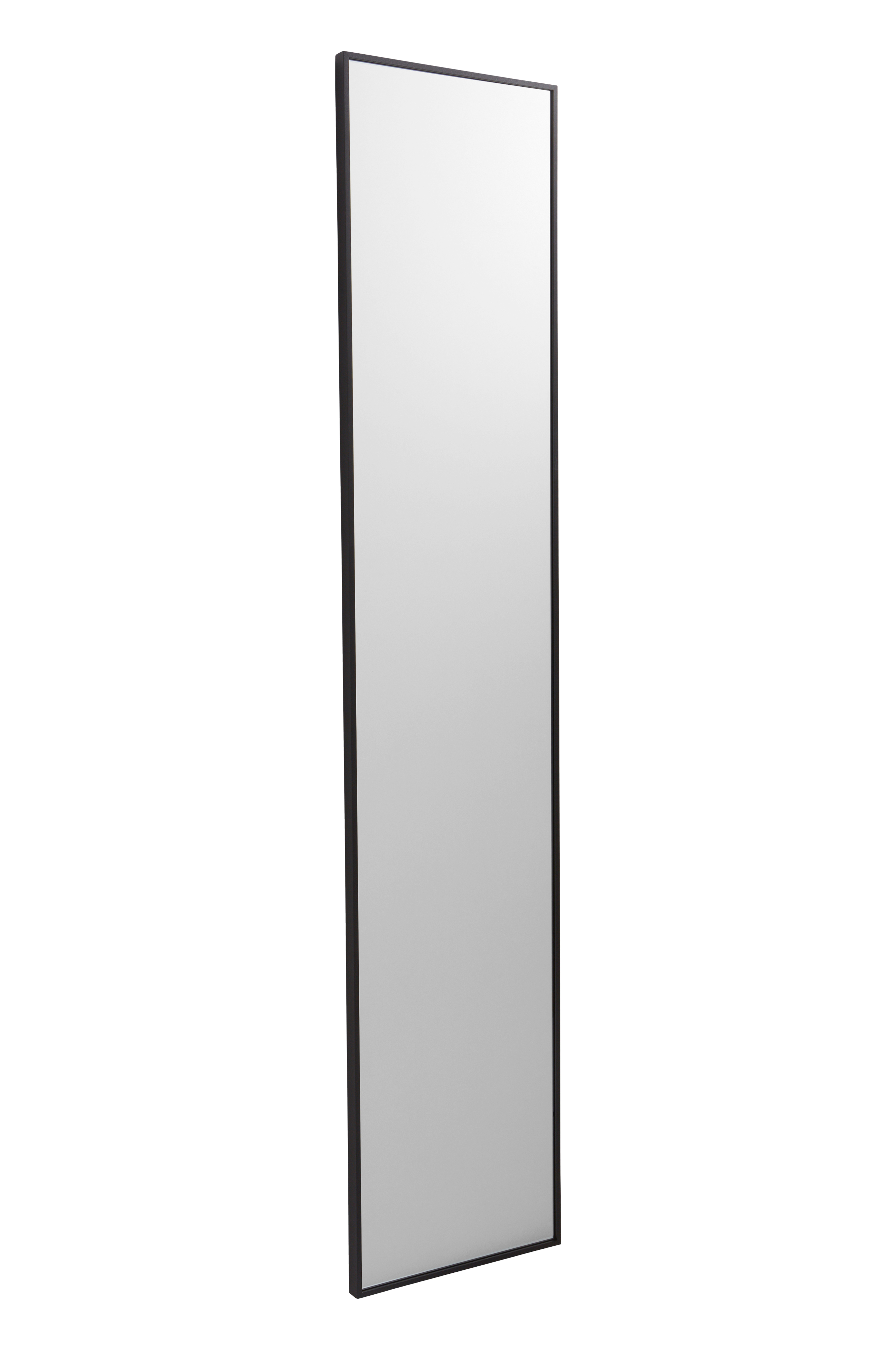 Rektangulært speil med lekker aluminiumsramme. Rammen har skjult forsterkning av MDF. Tre skjulte oppheng på baksiden slik at speilet kan henges både vannrett og loddrett.