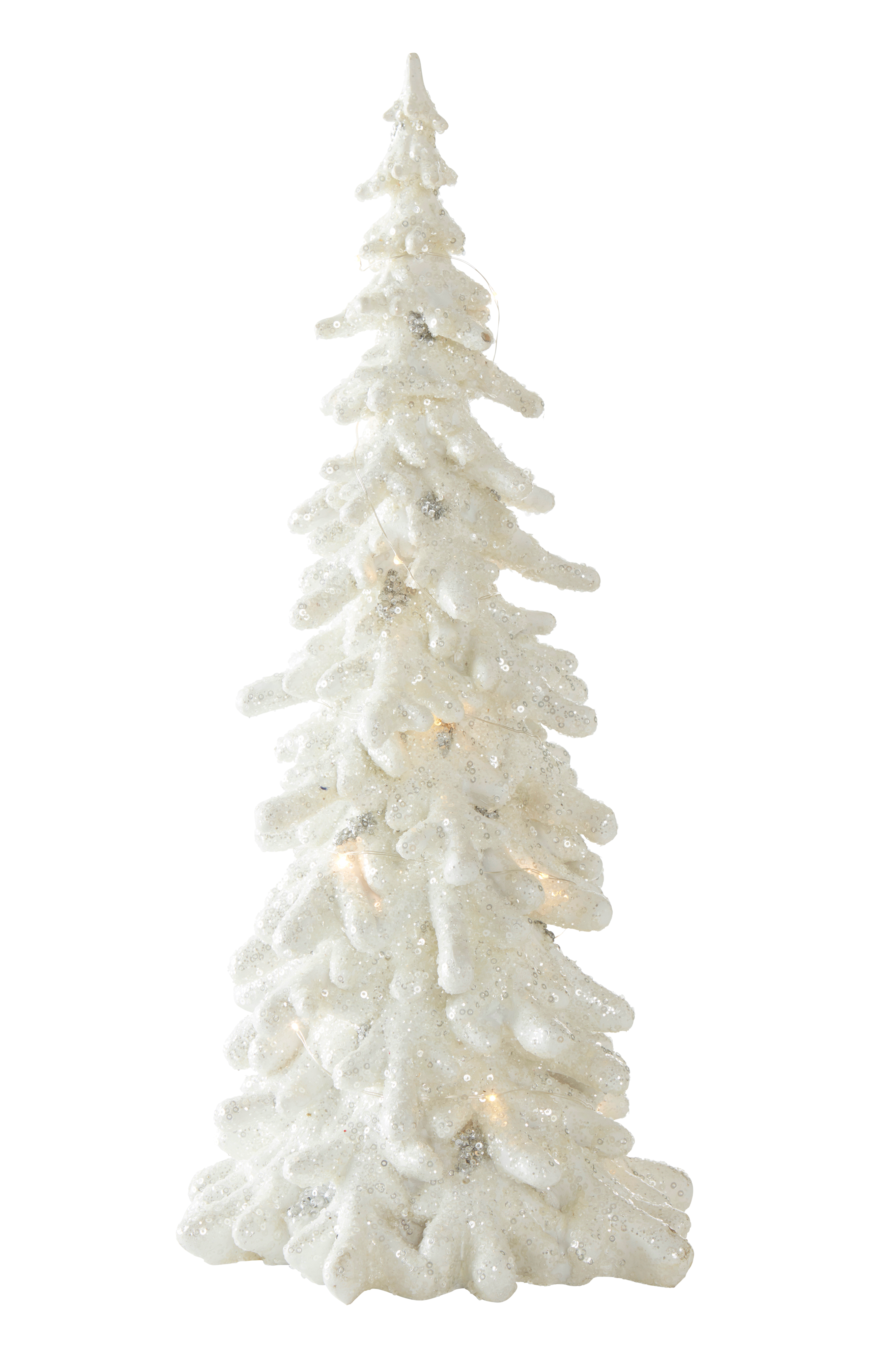 Høyt, stemningsfullt juletre med belysning og glitter. Drives med 3 AA-batterier. Batterier ikke inkludert.