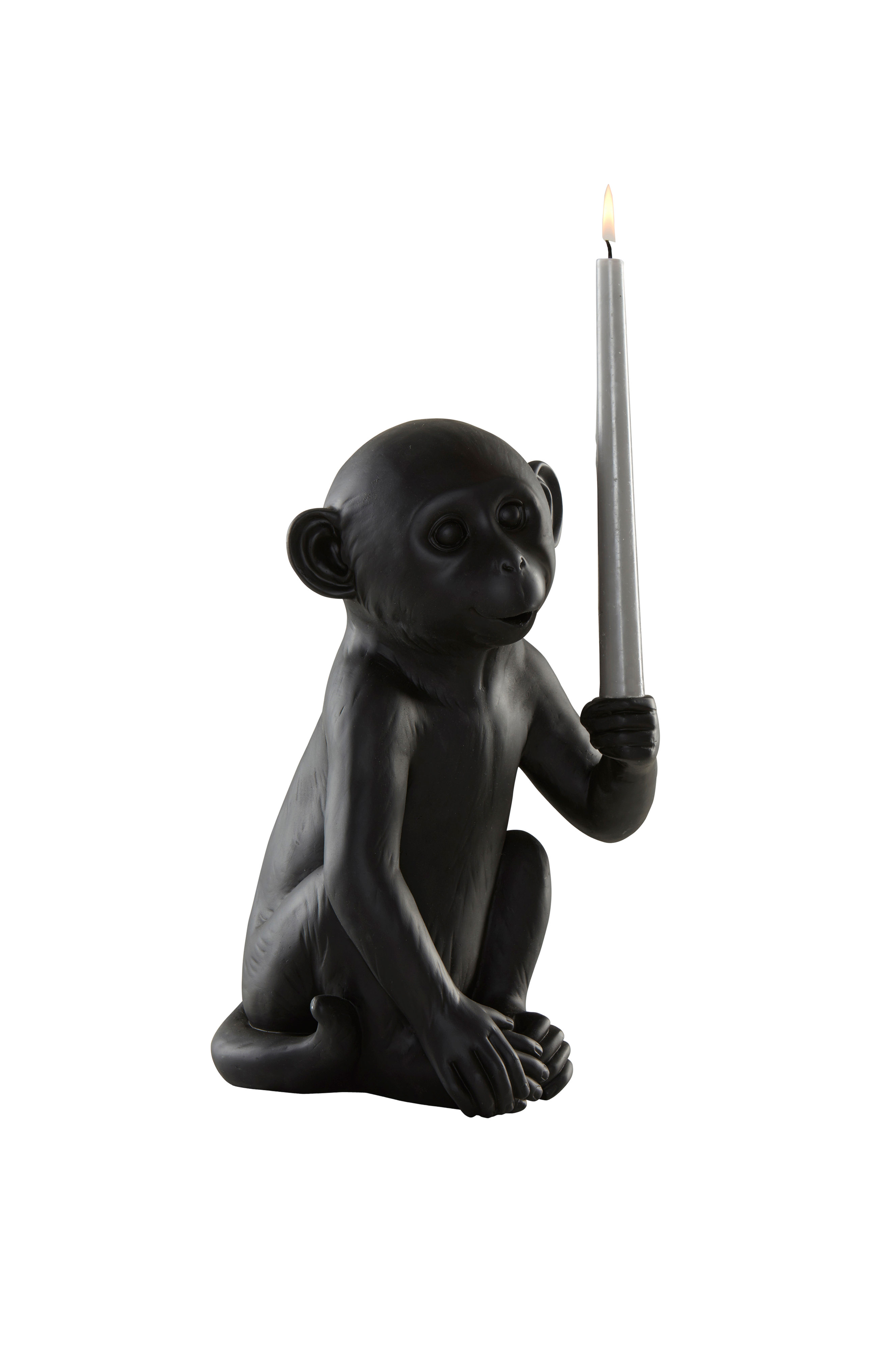 En spesiell og annerledes lysestake. Apen GULL kan holde et levende lys i hånden, men blir en fin dekor også uten lys. Det glade ansiktet gjør det lett å smile.