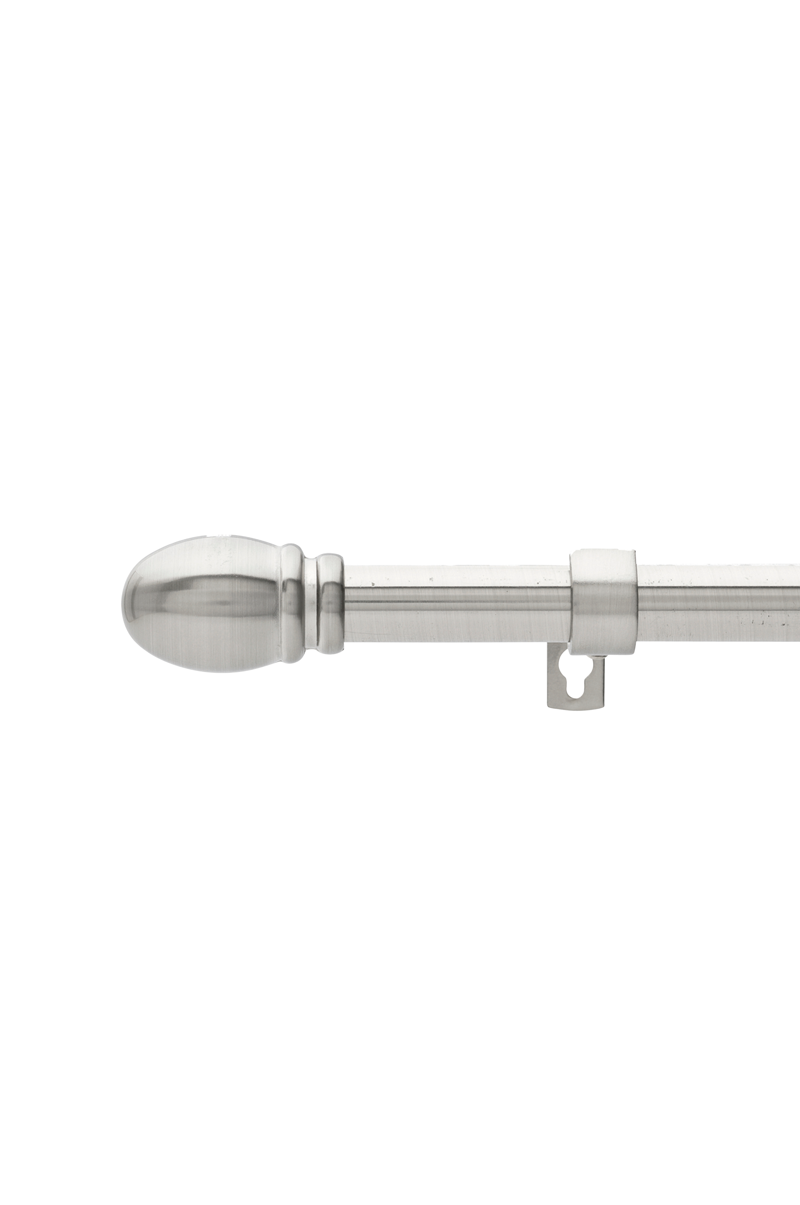 Stilig gardinstang i sølv med ovale endeknotter. Perfekt med 160cm til 300cm.
