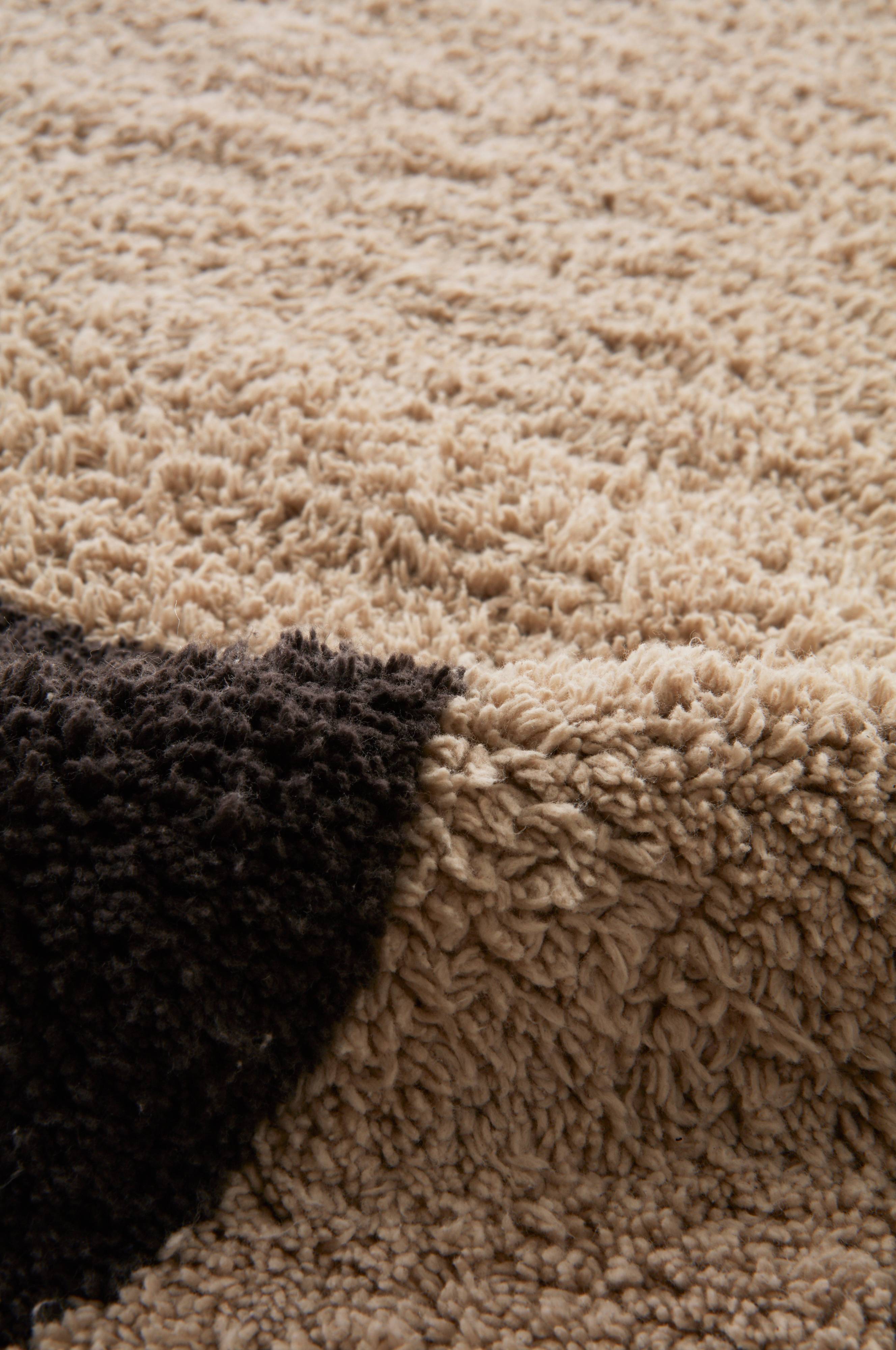 Mønstrete teppe av bomull med kort, myk lugg. Det dråpeformede og uregelmessige mønsteret gir et livlig teppe som fanger oppmerksomheten. Et mykt og deilig bomullsteppe passer like fint i stua som på soverommet. Lugghøyde 1 cm. Tykkelse 1,1 cm. 1365 g/m².