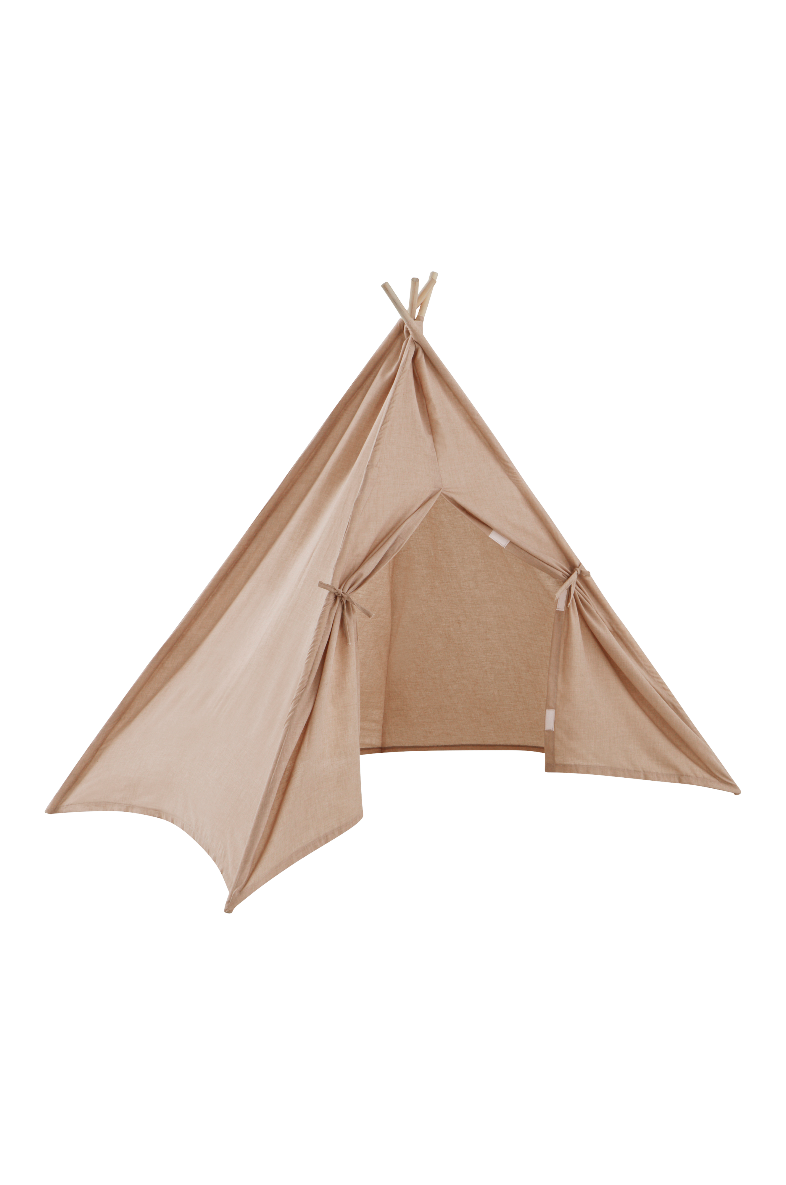 Barnetelt eller leketelt med fire sider og fire teltplugger. Åpning med knytebånd foran. Teltduken er av polyester og har en myk fløyelsfølelse. Teltet passer utmerket for lek eller koselige eventyrstunder, og blir en fin interiørdetalj på barnerommet.