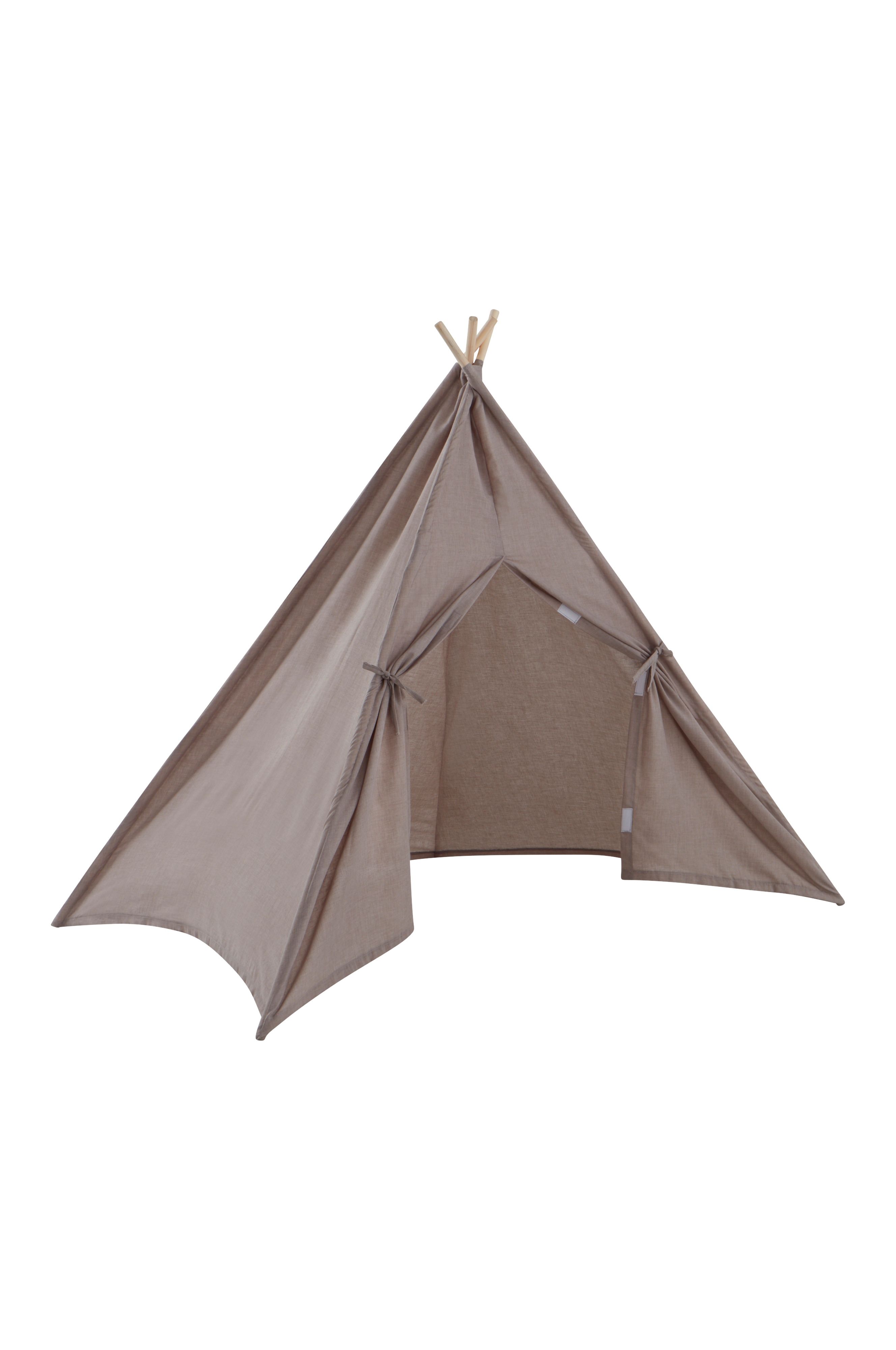 Barnetelt eller leketelt med fire sider og fire teltplugger. Åpning med knytebånd foran. Teltduken er av polyester og har en myk fløyelsfølelse. Teltet passer utmerket for lek eller koselige eventyrstunder, og blir en fin interiørdetalj på barnerommet.