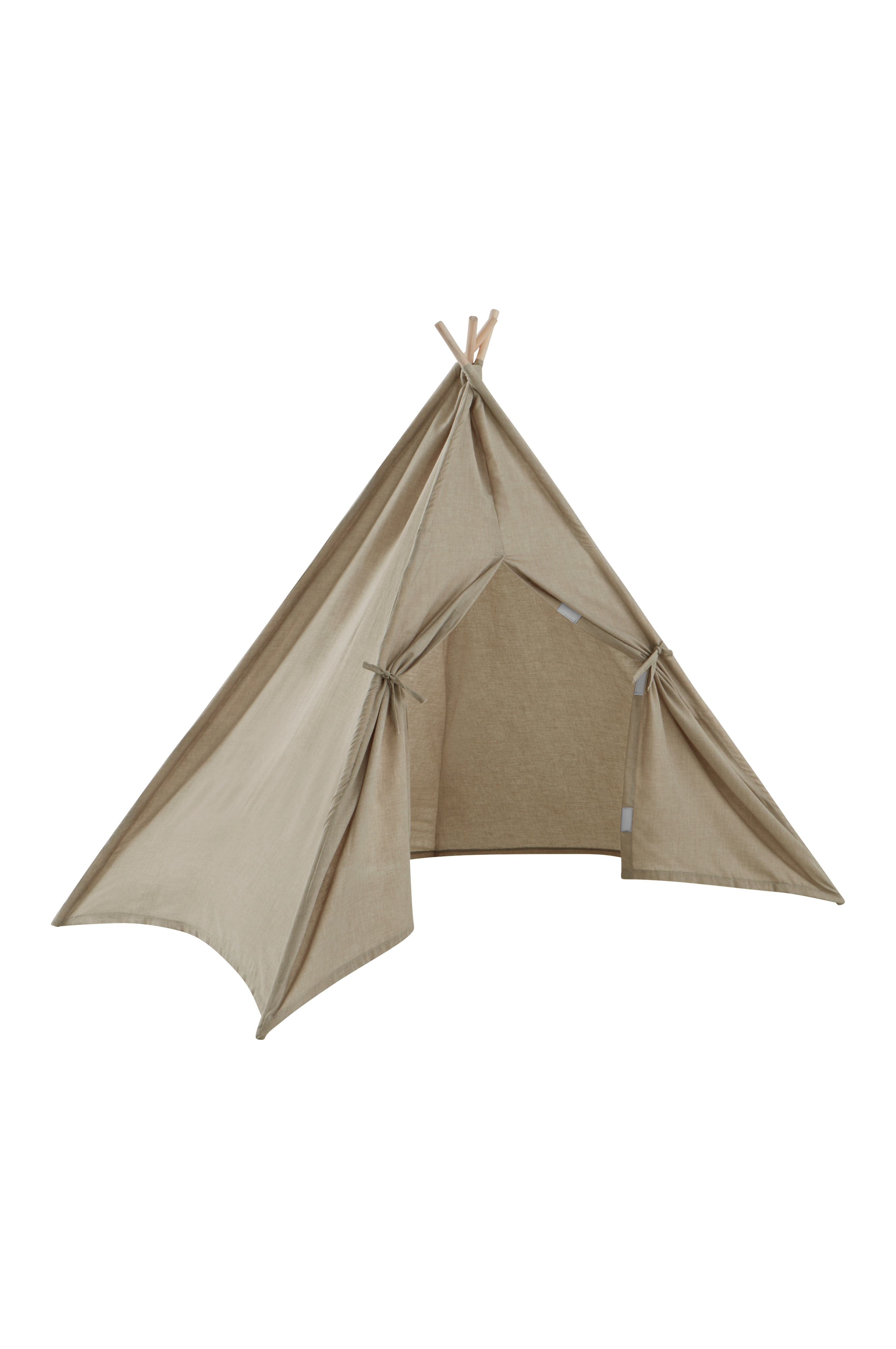Barnetelt eller leketelt med fire sider og fire teltplugger. Åpning med knytebånd foran. Teltduken er av polyester og har en myk fløyelsfølelse. Teltet passer utmerket for lek eller koselige eventyrstunder, og blir en fin interiørdetalj på barnerommet.