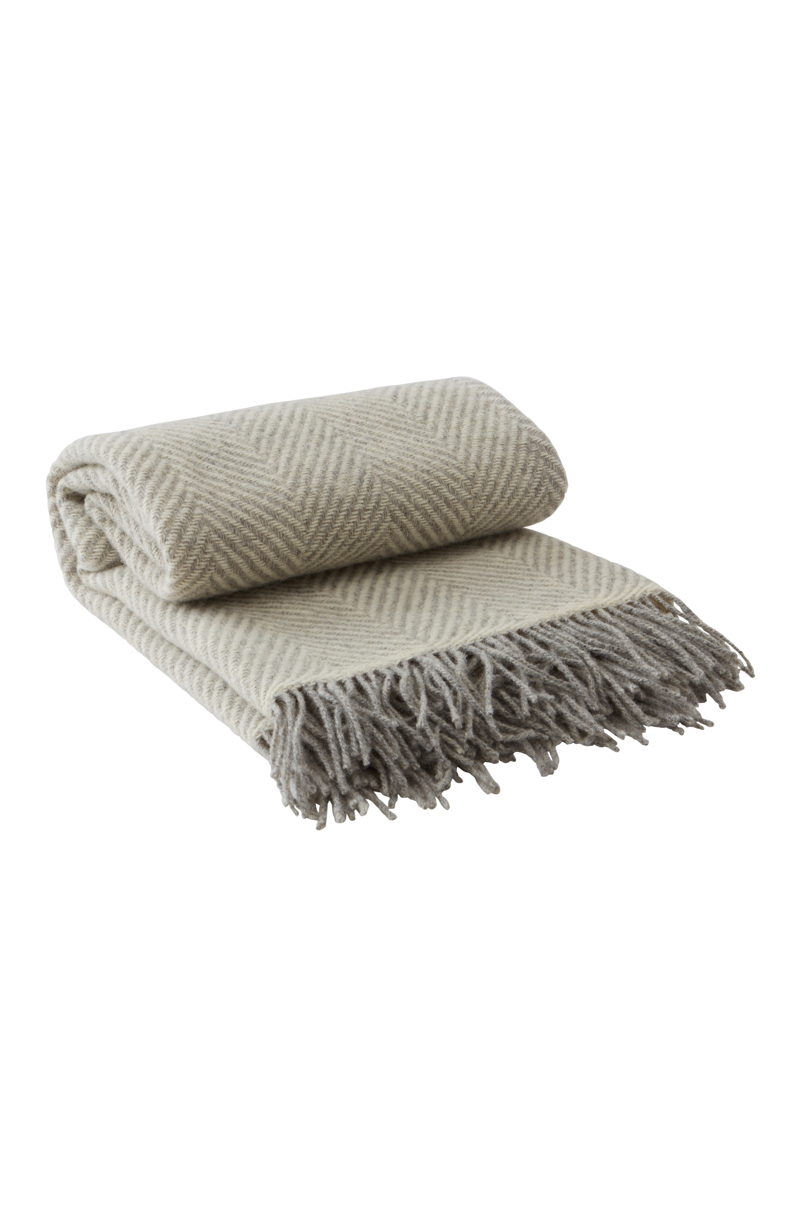 Eksklusivt pledd i 100% ull som varmer ekstra godt når det er kaldt. Ullpleddet har fint fiskebensmønster og frynser langs kortsidene. Ull er et naturlig materiale med smussavvisende egenskaper, og pleddet blir fresht når du lufter det i frisk luft.