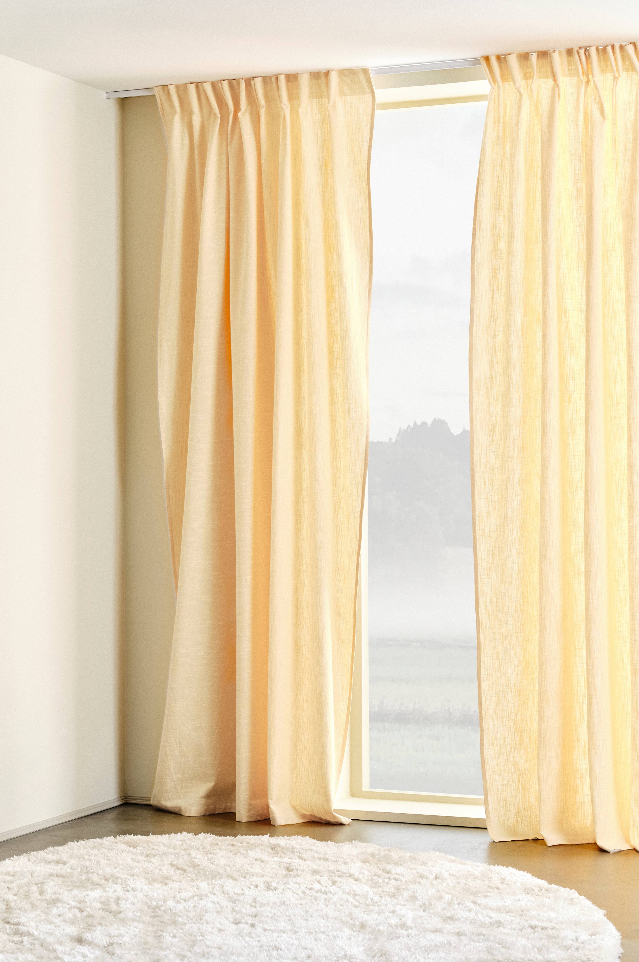 2-pk ensfarget gardinlengde av bomull med påsydd multifunksjonsbånd. Ensfarget roer ned samtidig som det skaper en hjemmekoselig følelse. Gardinen kan henges opp med fingerkroker, løpegang eller skjult hempe.