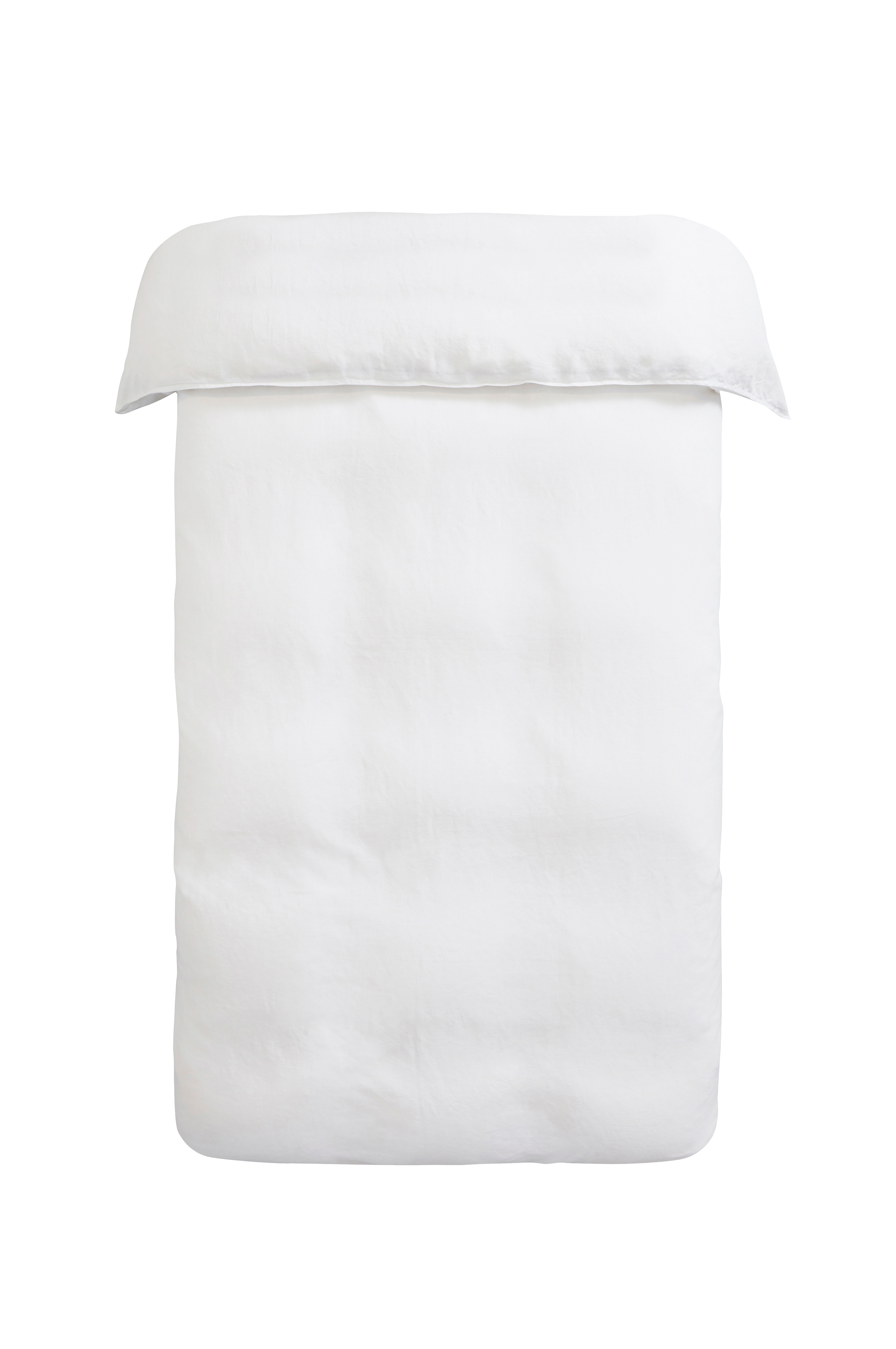 Dynetrekk i plaggvasket lin- og bomullsblanding. Dobbeltsømmer og knapper for lukking. Trådtetthet på 92 tc. (Trådtettheten forteller om antallet tråder, thread counts, pr. kvadrattomme i et stoff. Jo høyere trådtetthet, desto høyere kvalitet. Lin og linblanding blir ofte vevd litt løsere for å få den riktige følelsen.)