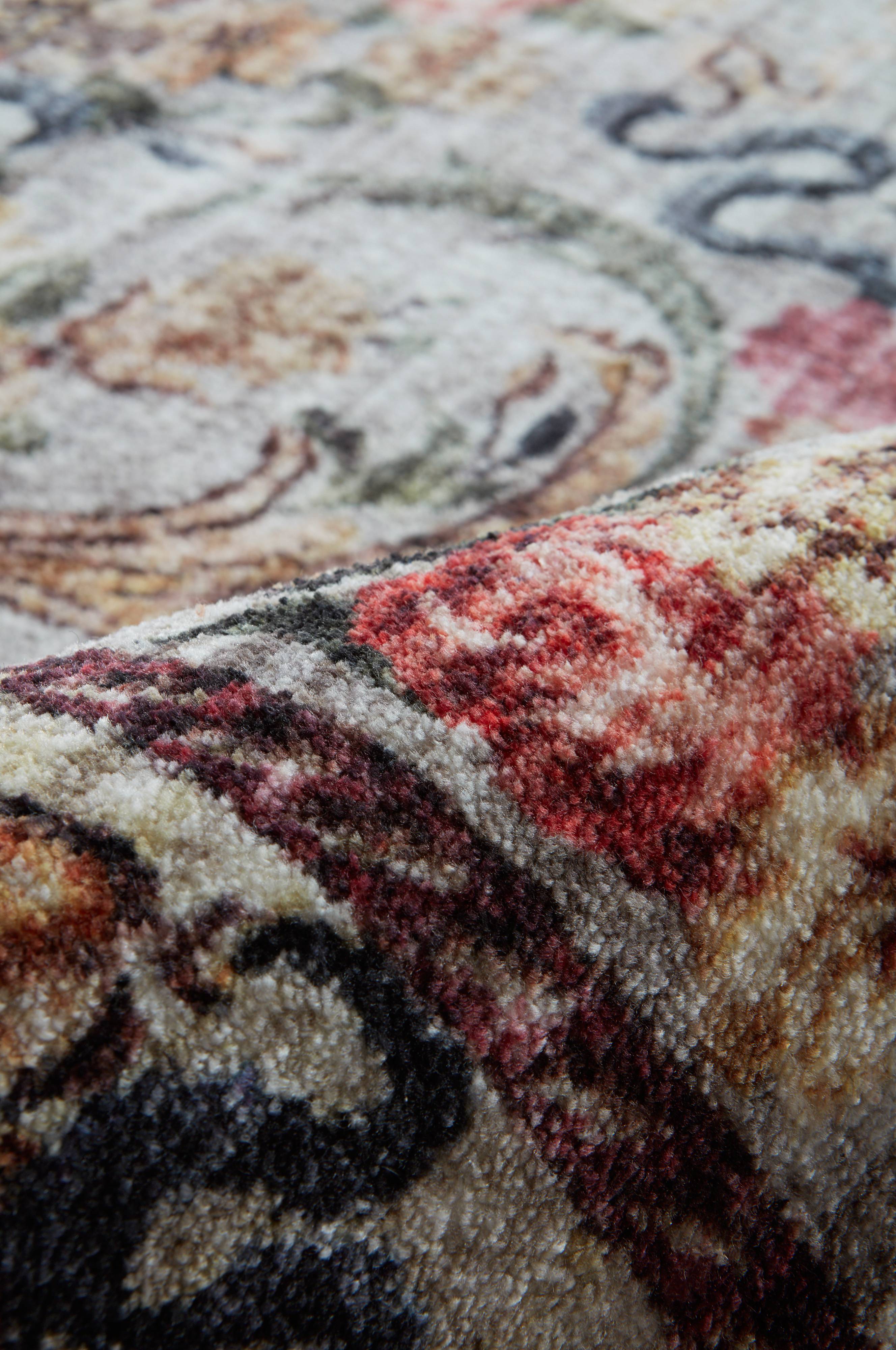 Mykt luggteppe med tett, kort lugg av gjenvunnet polyamid. Teppet er digitaltrykt med et fargerikt, klassisk blomstermønster på lys bunn i beige nyanser, og vintagefølelsen er åpenbar. Teppet har vakker glans, og det digitale trykket gir et mykt og mer distinkt trykk med klar fargegjengivelse. Lugghøyde 0,9-1 cm. Tykkelse 1,1-1,2 cm. 2400-2600 g/m².