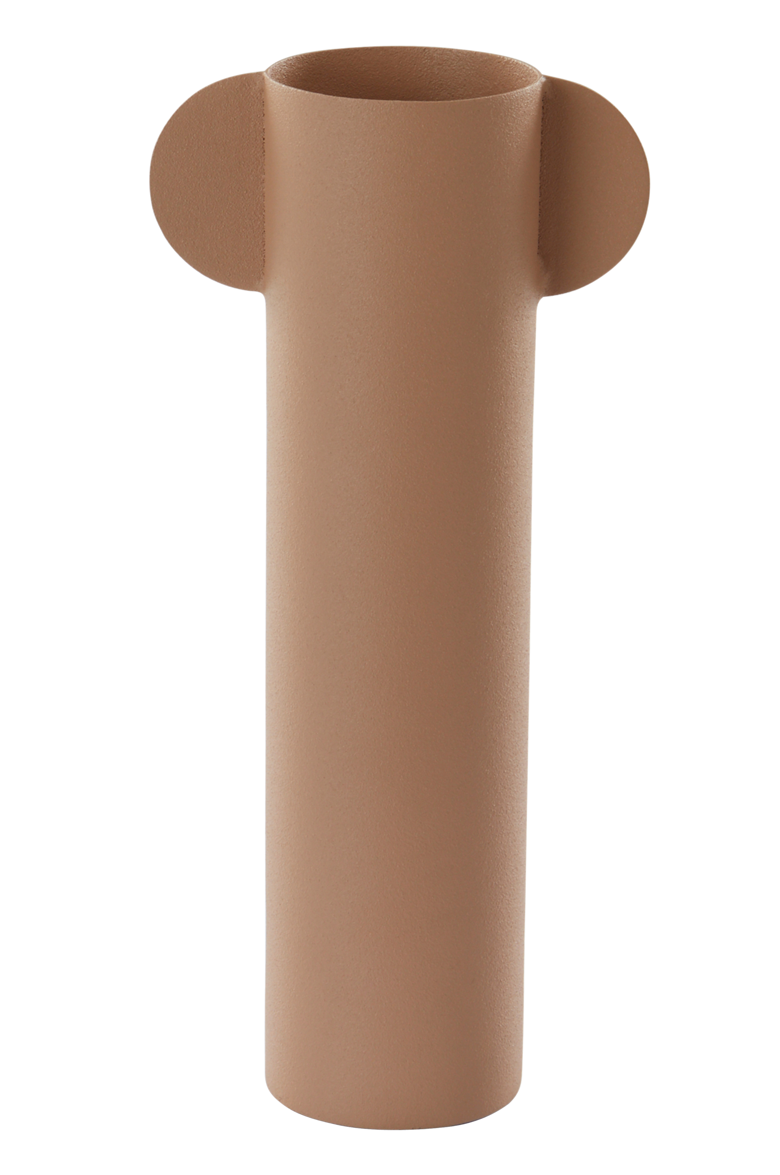 Dekorvase av jern som er pulverlakkert i fin farge. Overflaten har samme matte følelse som støpejern. Vasen tåler vann, men vann kan over tid gjøre at den ruster.
