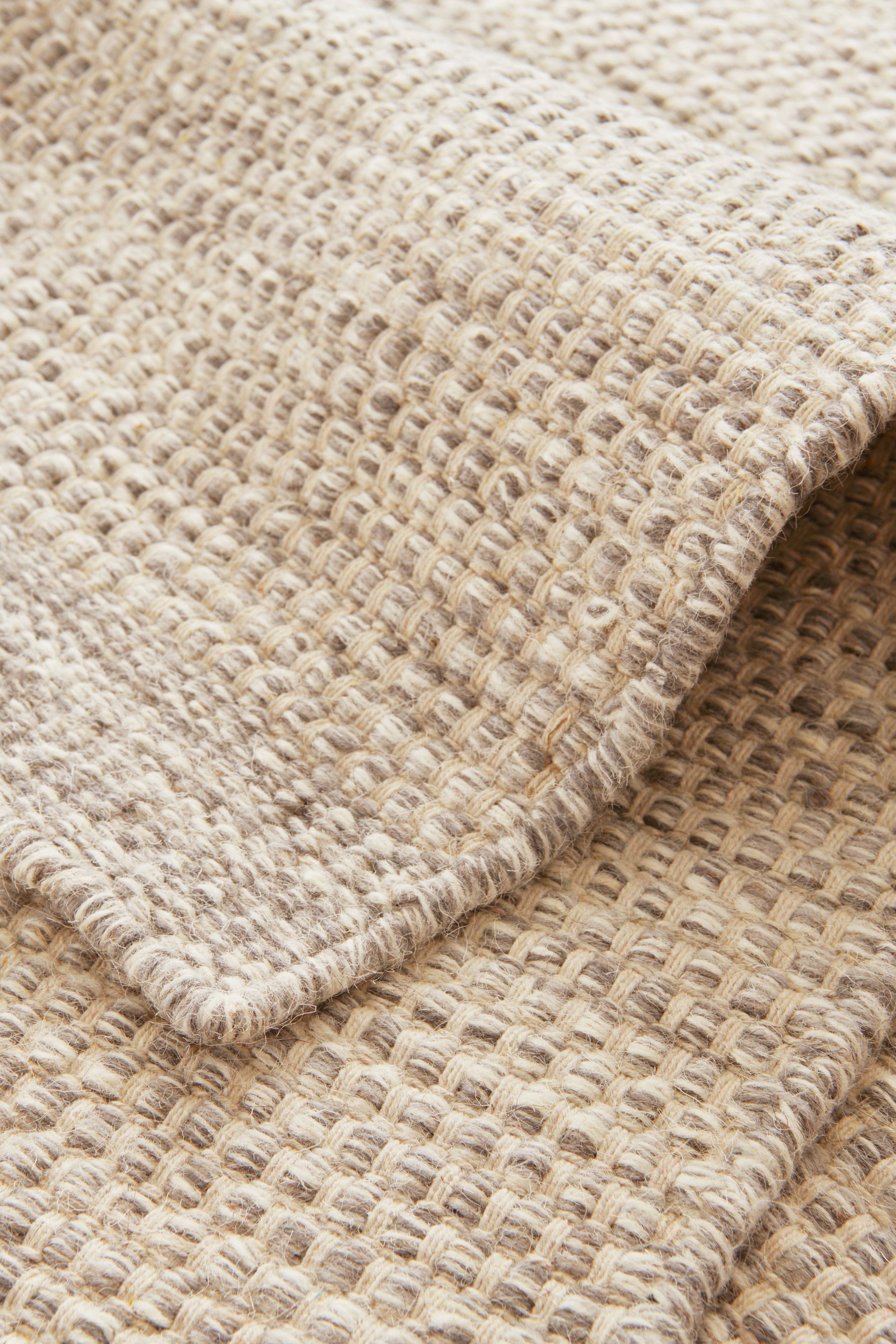 Håndvevd teppe av garnfarget ull. Teppet er glattvevd med en litt grov følelse, og har en stilren design som passer inn i mange ulike stiler og trender. Tykkelse/høyde: 9 mm.