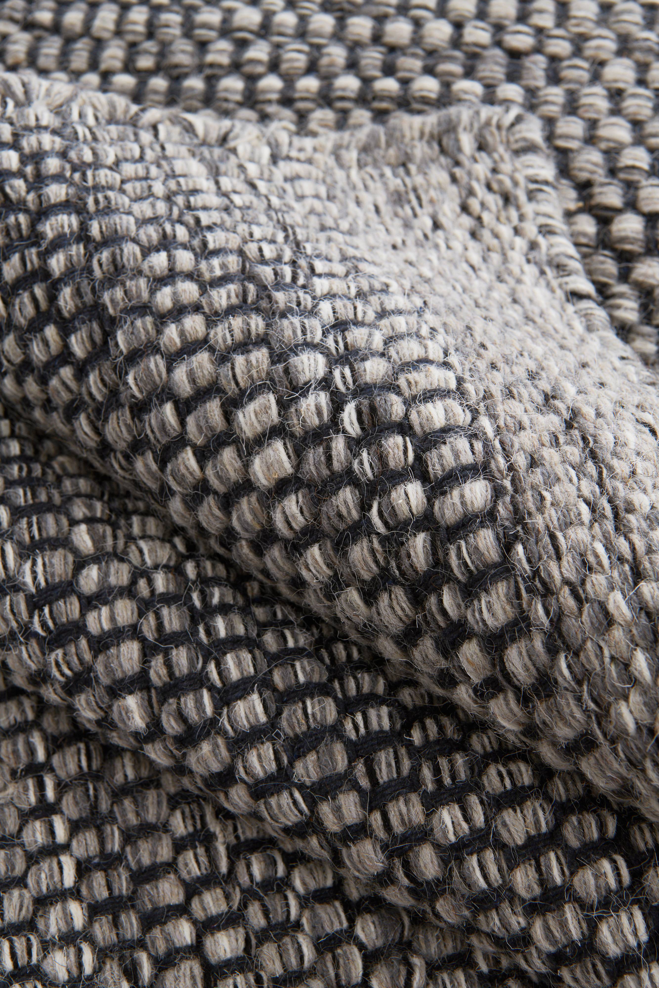 Håndvevd teppe av garnfarget ull. Teppet er glattvevd med en litt grov følelse, og har en stilren design som passer inn i mange ulike stiler og trender. Tykkelse/høyde: 9 mm.