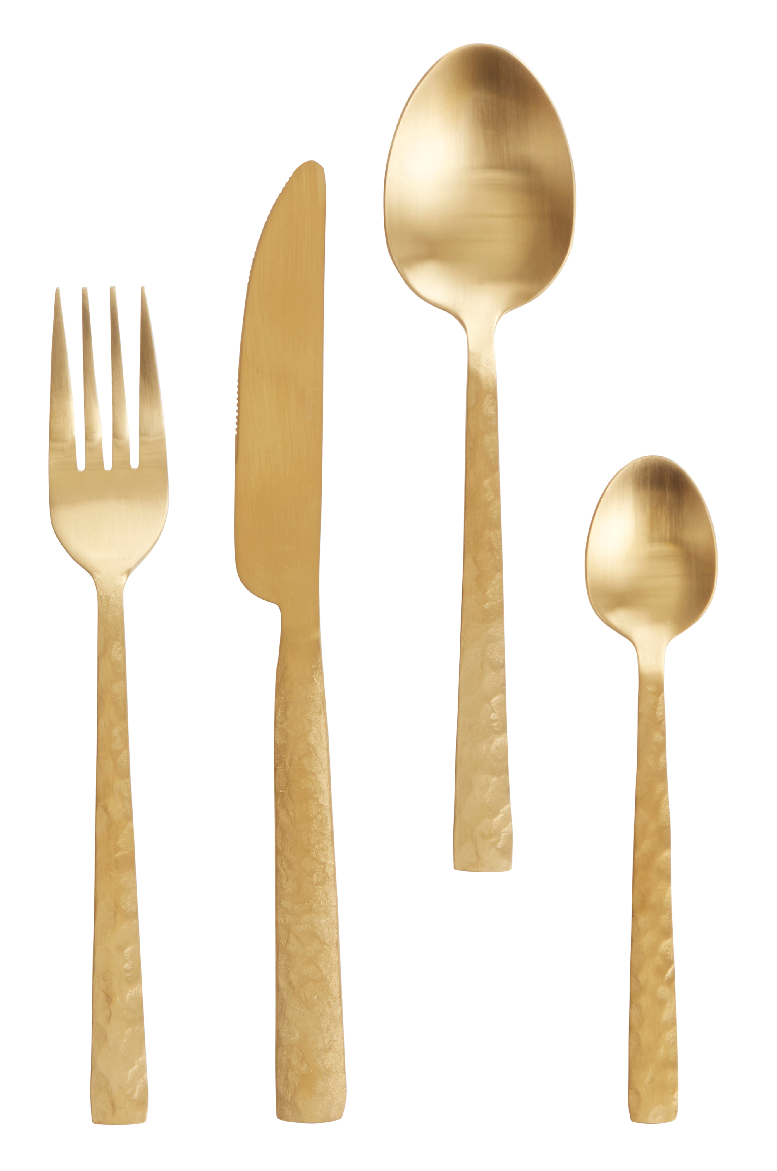 Bestikk i 24 deler, alle skaft har pent hamret effekt. Bestikk av rustfritt stål med matt finish. Inneholder gaffel, kniv, skje og teskje, 6 av hver. Bestikk som passer til hverdags og fest.