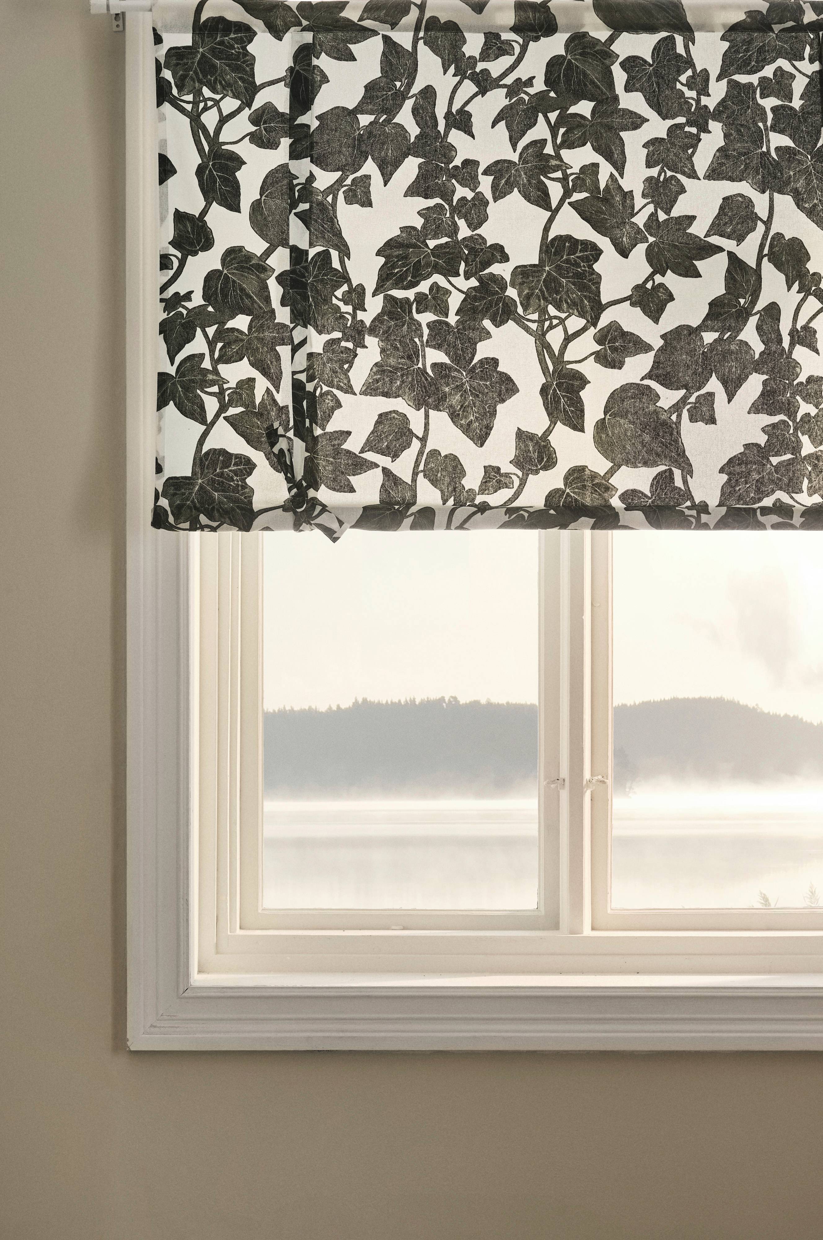 IVY er en effektfull og innbydende kolleksjon av bomull. De trykte rankene av eføy på naturhvit bunn gir en naturnær følelse. Stoffet har fint vevd tekstur. Roll up-gardinen henges på vanlig gardinstang. Høyden reguleres med knytebånd.