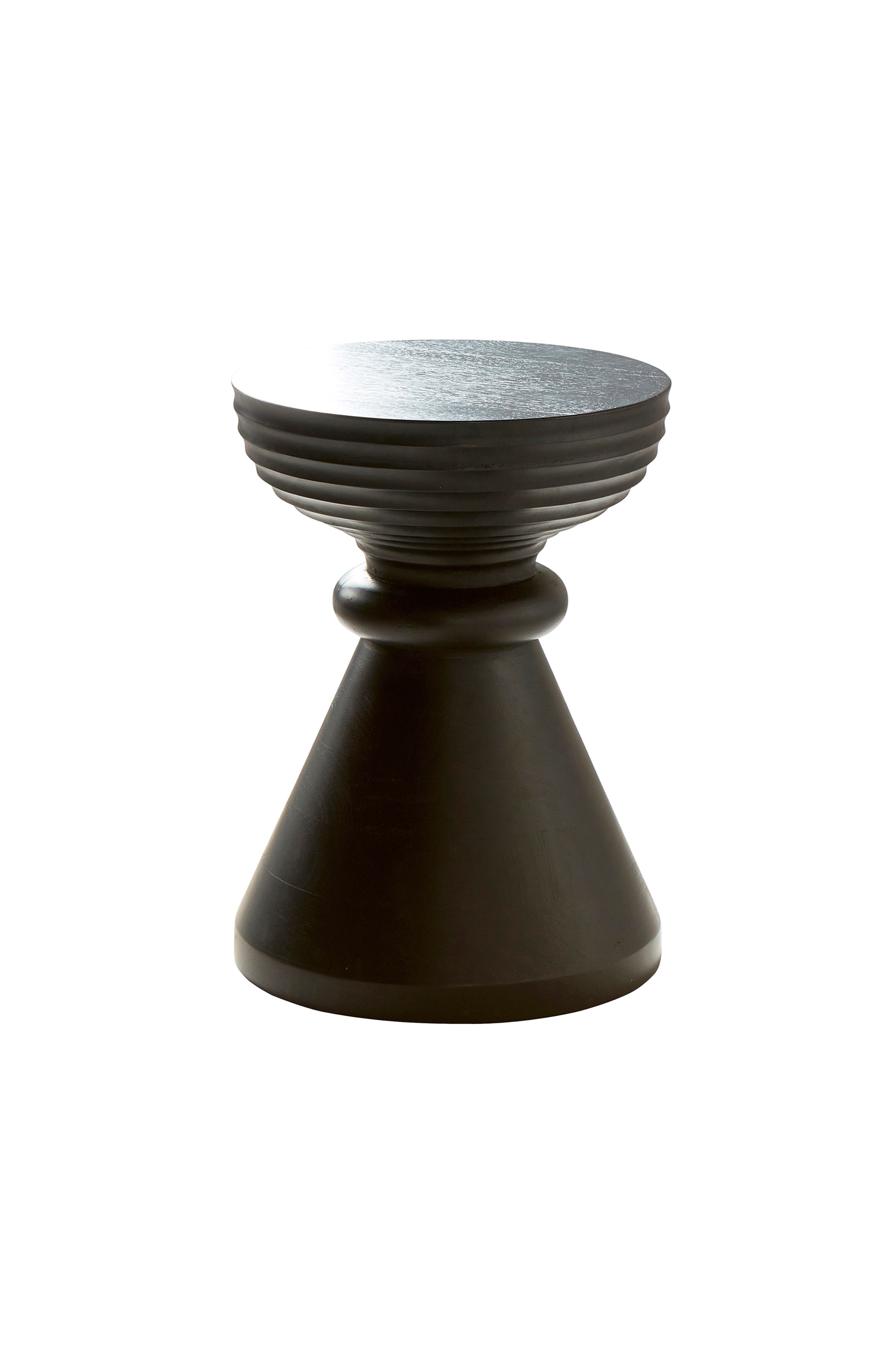 Beskrivelse: Rund krakk/sidebord av svartmalt mangotre.