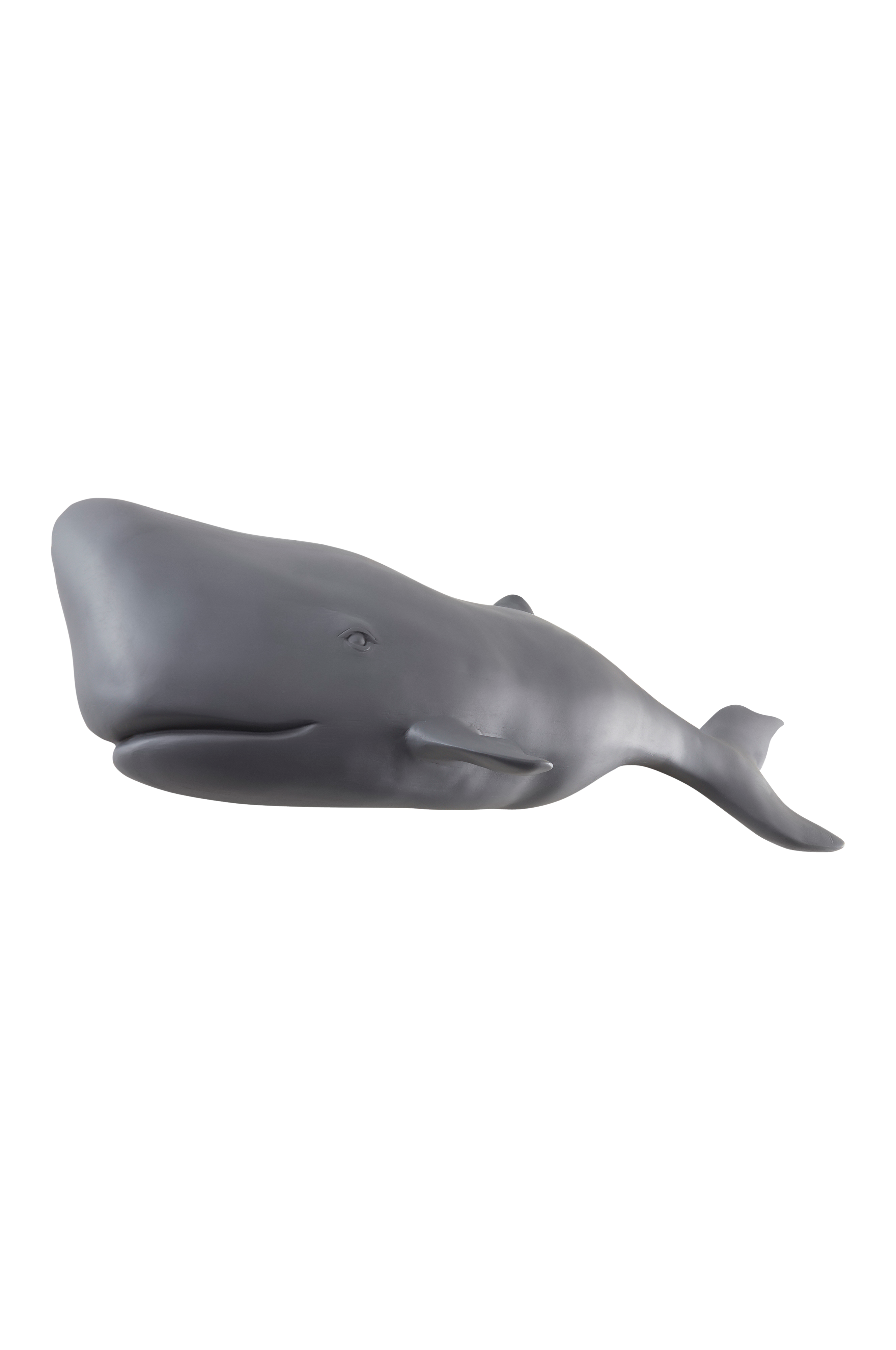 Veggdekor av polyresin i form av en fin hval med helt matt overflate. Hvalen har hull på baksiden for oppheng.